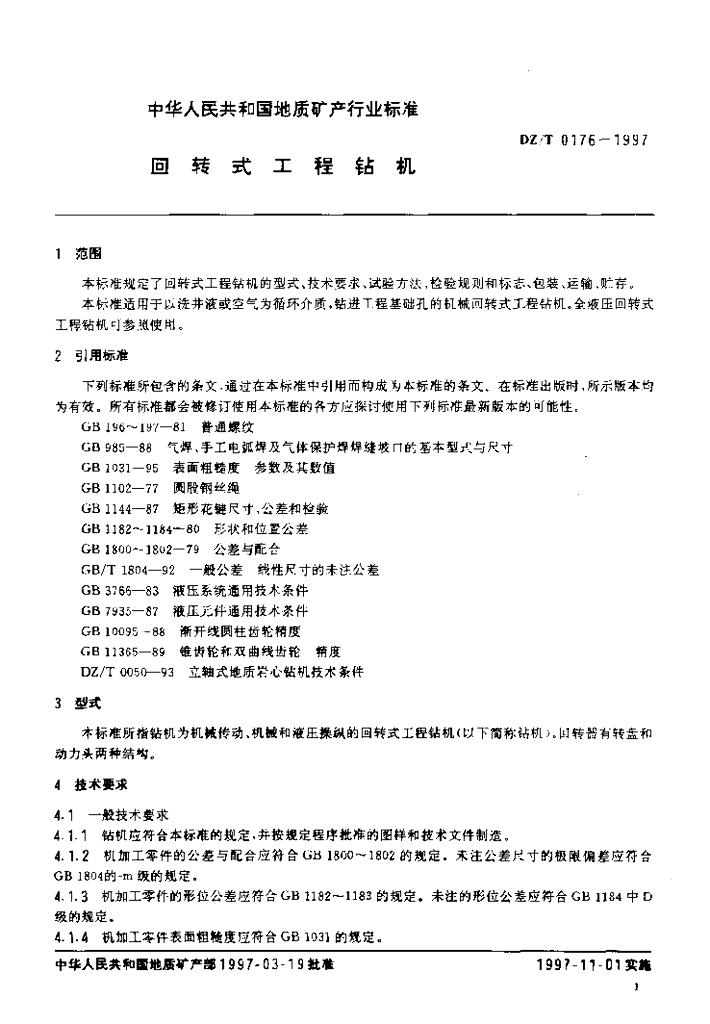 DZ/T 0176-1997 回转式工程钻机