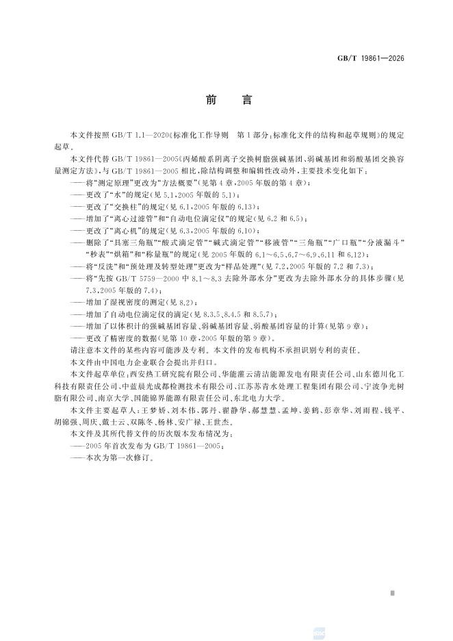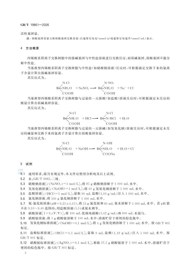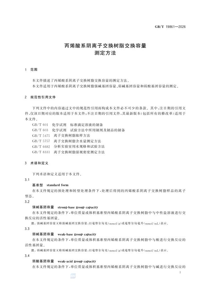 GB/T 19861-2026 丙烯酸系阴离子交换树脂交换容量测定方法