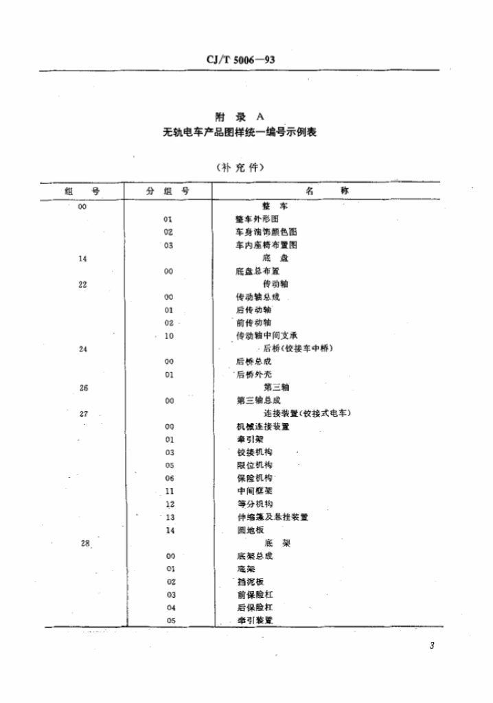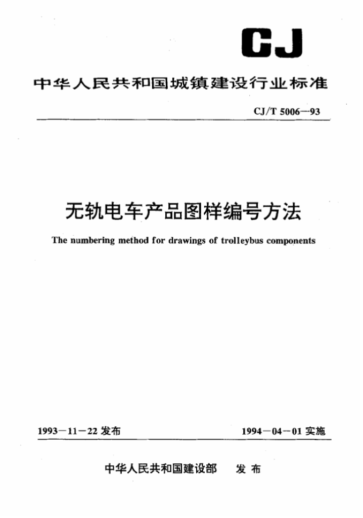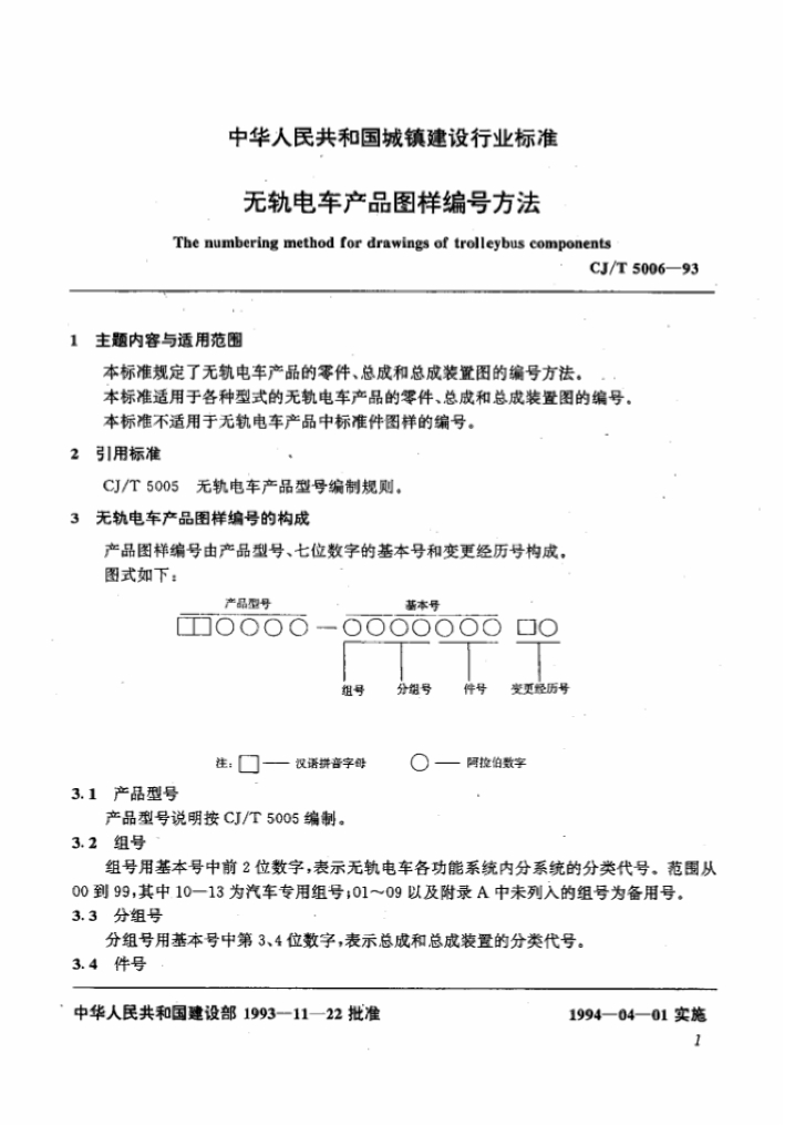 CJ/T 5006-1993 无轨电车产品图样编号方法