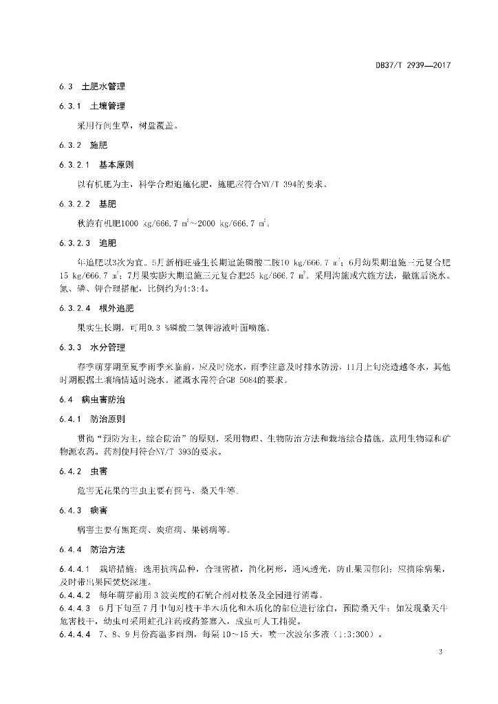DB37/T 2939-2017 无花果绿色栽培技术规程