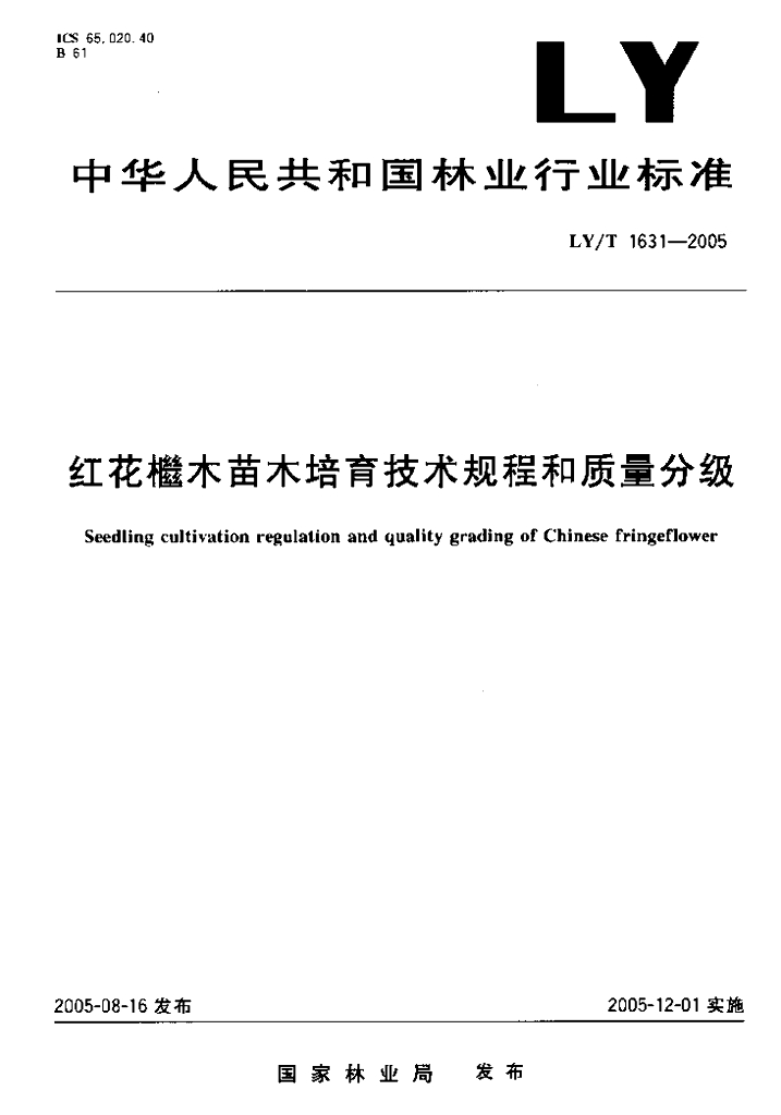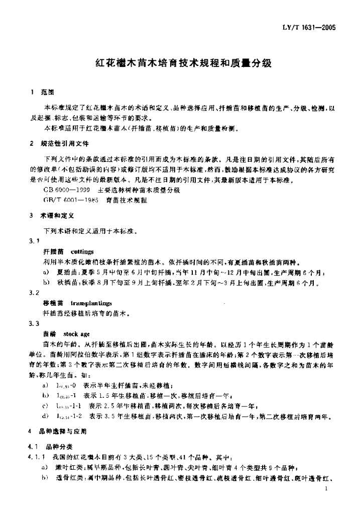 LY/T 1631-2005 红花檵木苗木培育技术规程和质量分级
