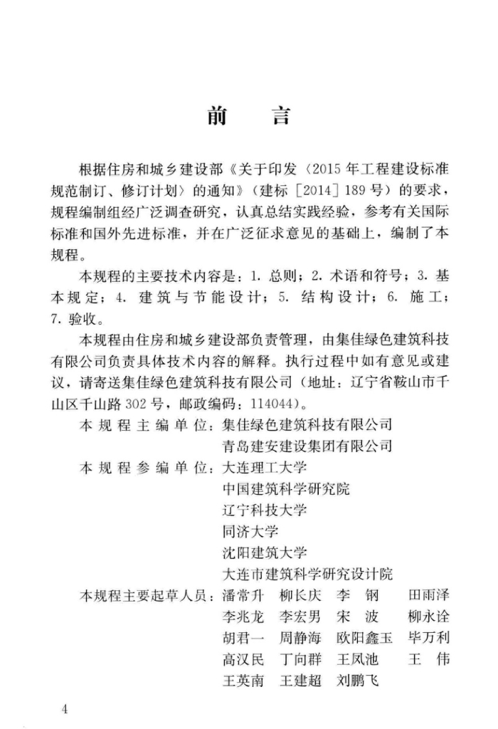 集佳绿色建筑科技有限公司、青岛建安建设集团有限公司、大连理工大学、中国建筑科学研究院、辽宁科技大学、同济大学、沈阳建筑大学、大连市建筑科学研究设计院