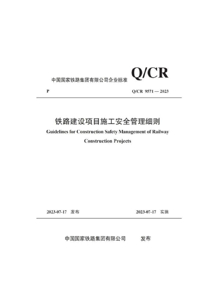 Q/CR 9571-2023 铁路建设项目施工安全管理细则