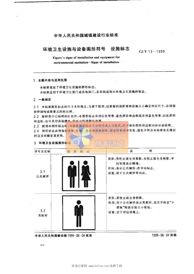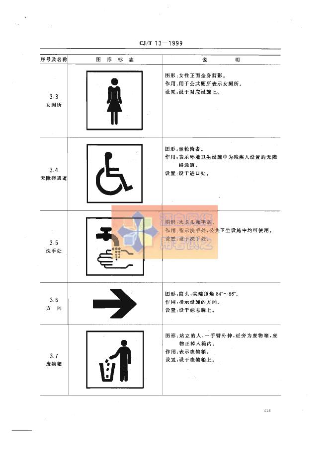 CJ/T 13-1999 环境卫生设施与设备图形符号 设施标志