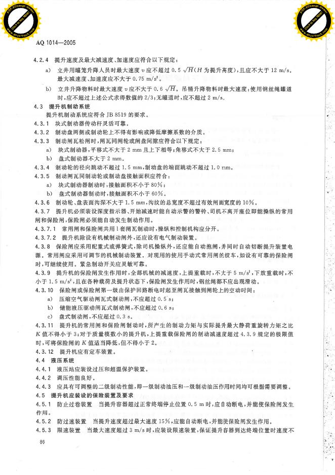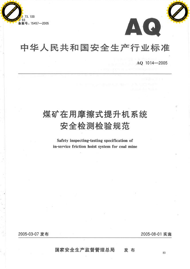 AQ 1014-2005 煤矿在用摩擦式提升机系统安全检验检测规范