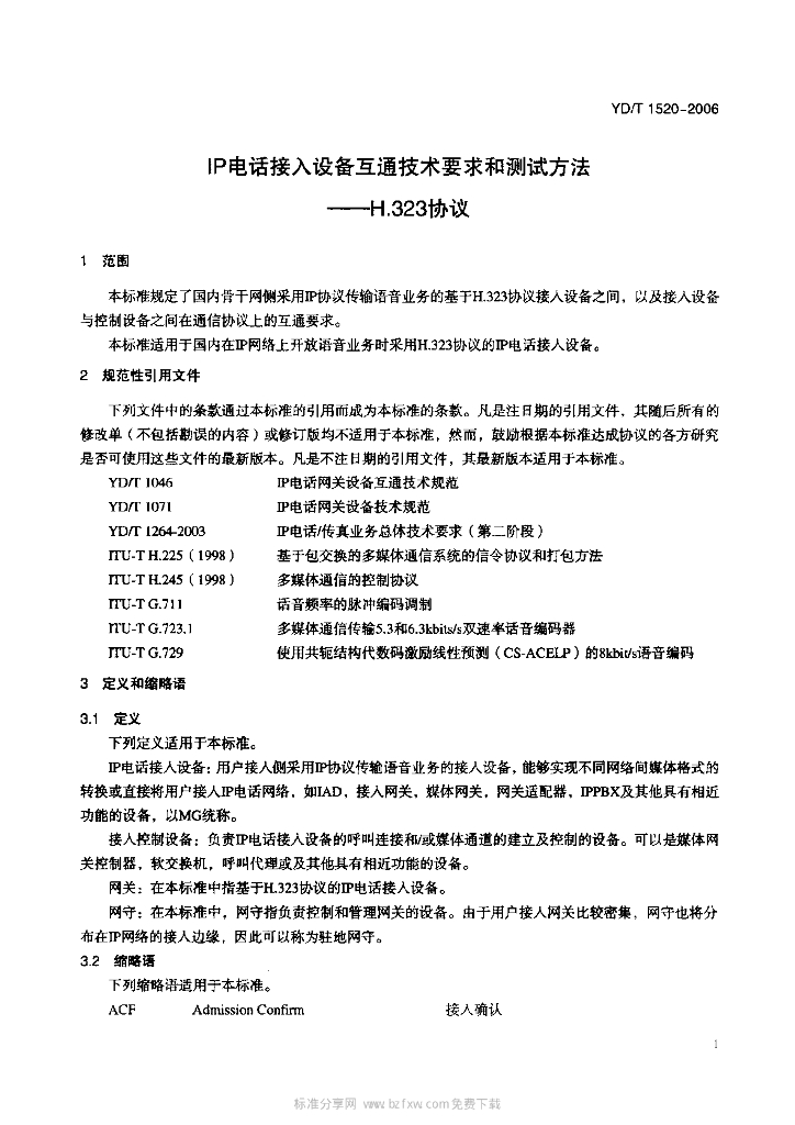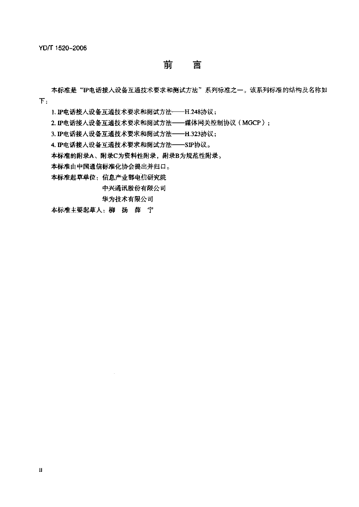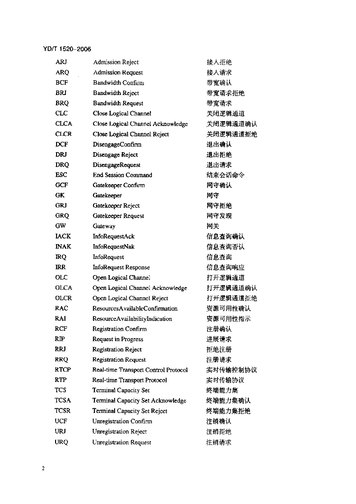 YD/T 1520-2006 IP 电话接入设备互通技术要求和测试方法——H.323 协议