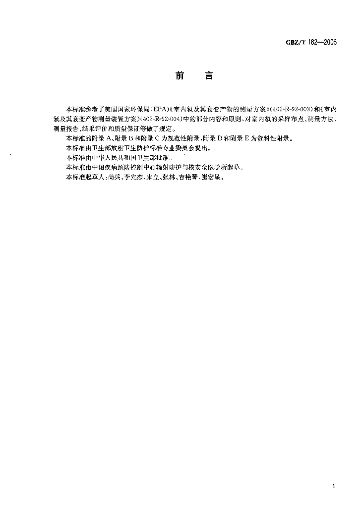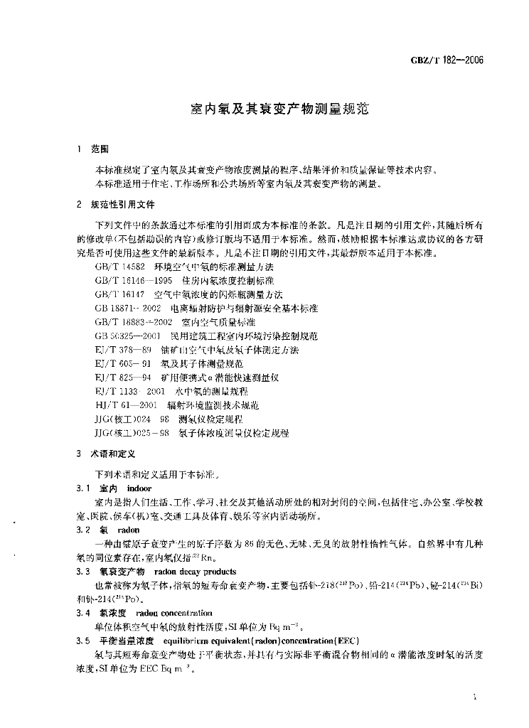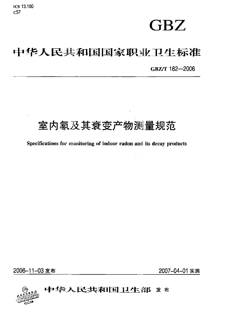 GBZ/T 182-2006 室内氡及其衰变产物测量规范