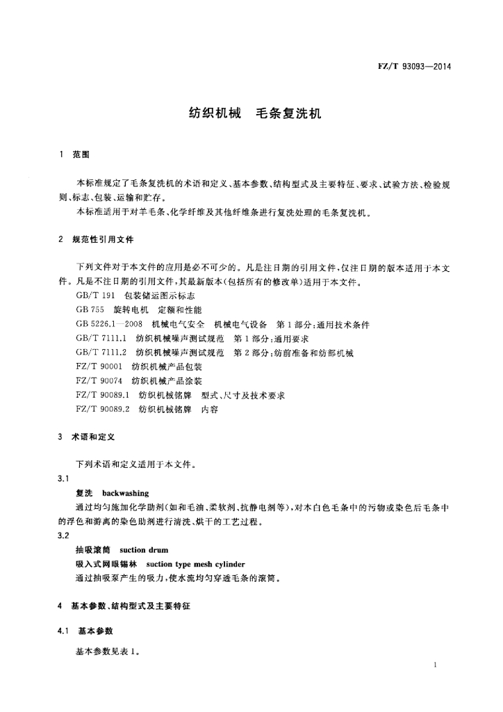 FZ/T 93093-2014 纺织机械毛条 复洗机