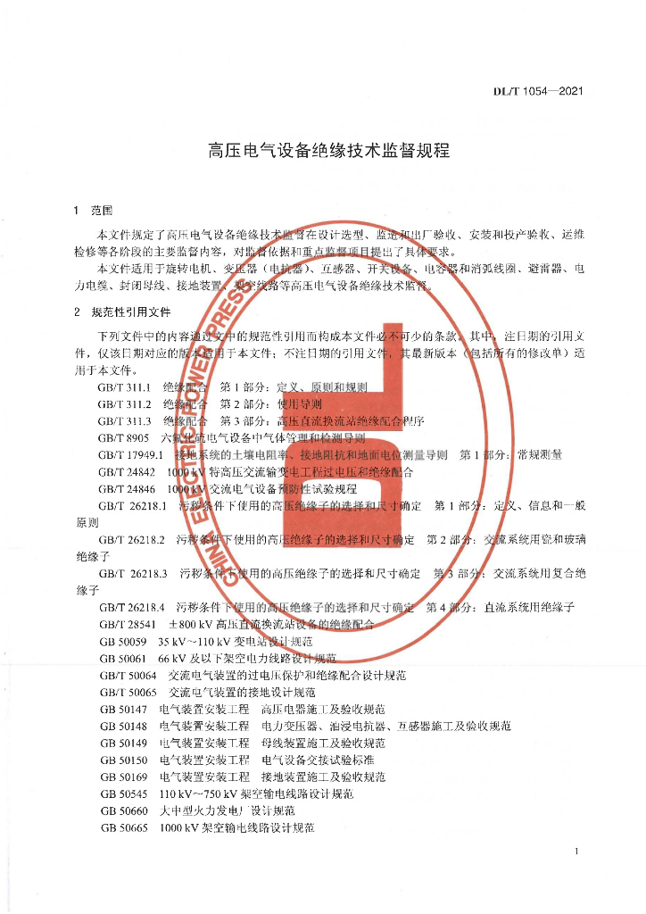 DL/T 1054-2021 高压电气设备绝缘技术监督规程