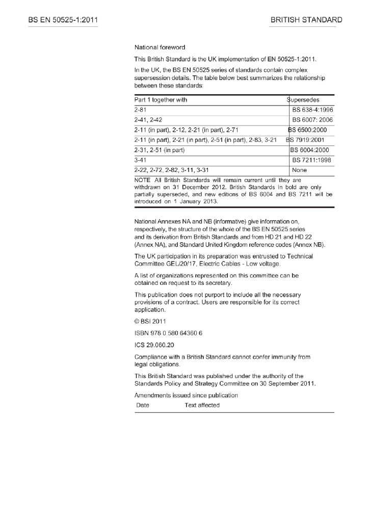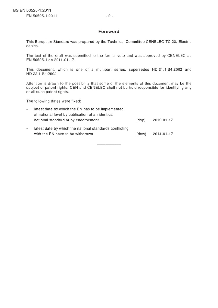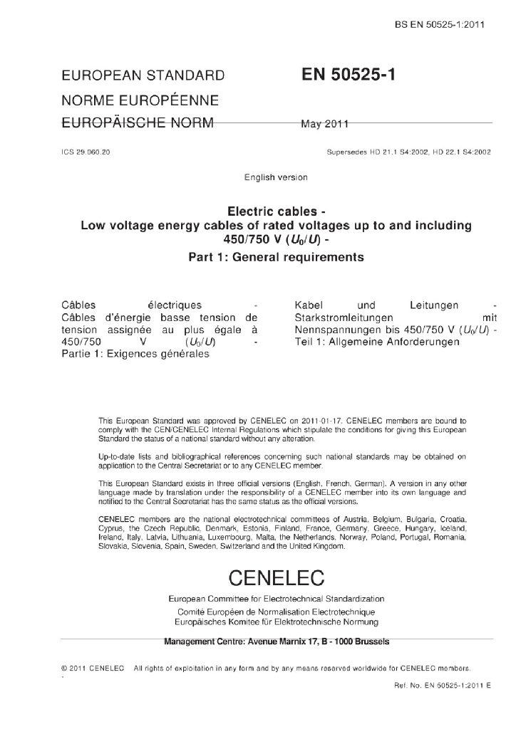 EN 50525-1:2011 额定电压450/750V及以下电缆 - 第1部分 一般要求