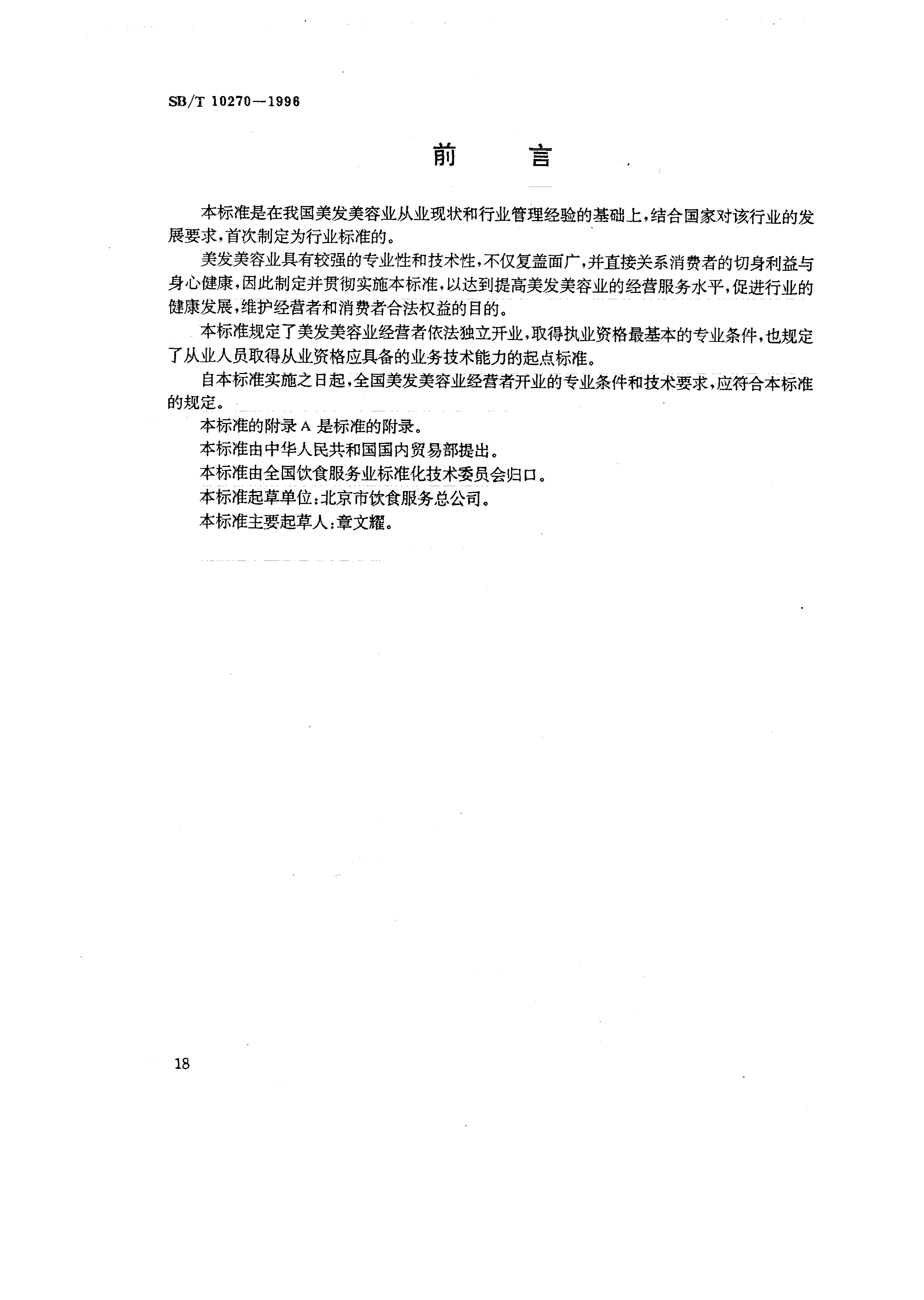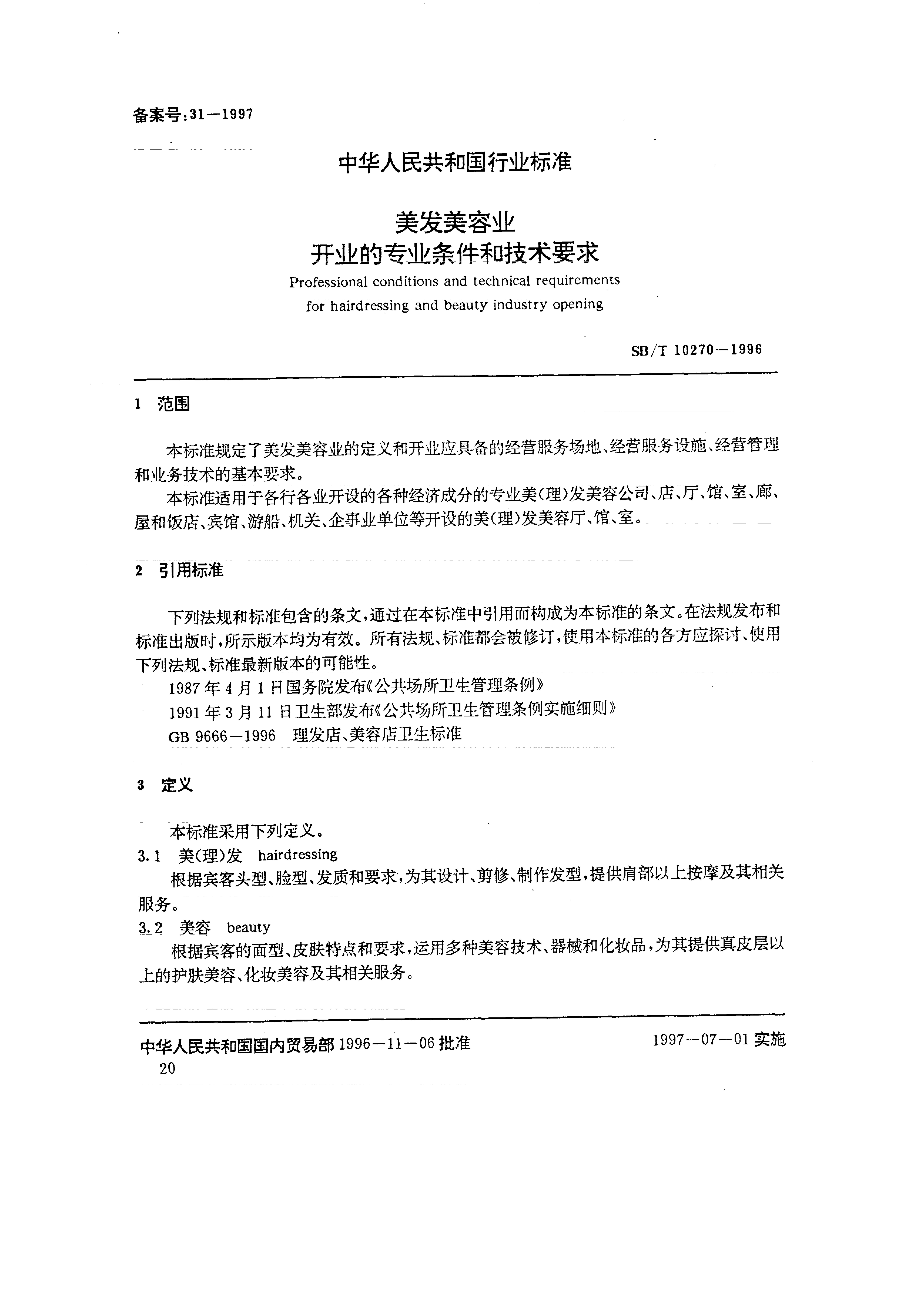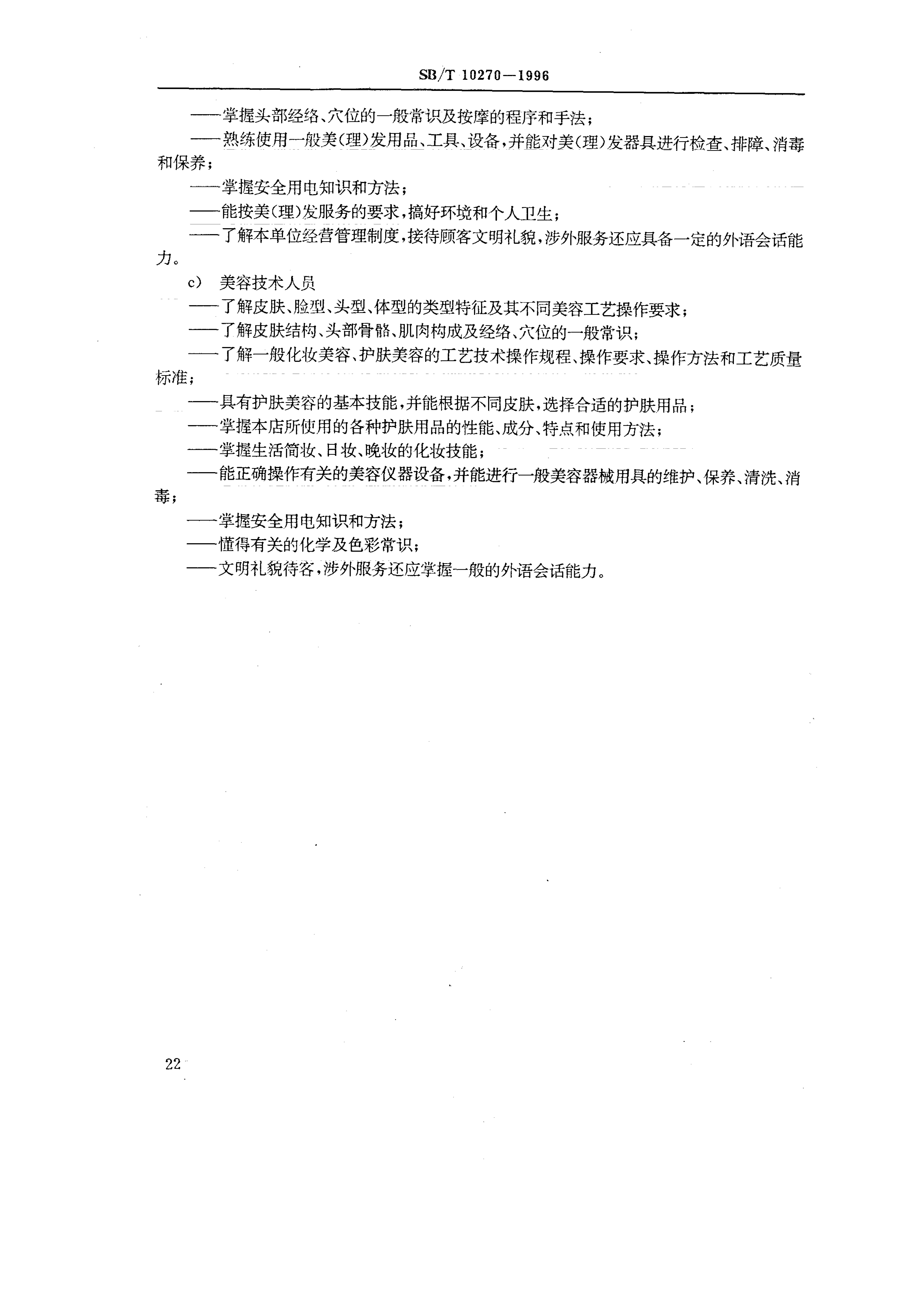 SB/T 10270-1996 美发美容业开业的专业条件和技术要求