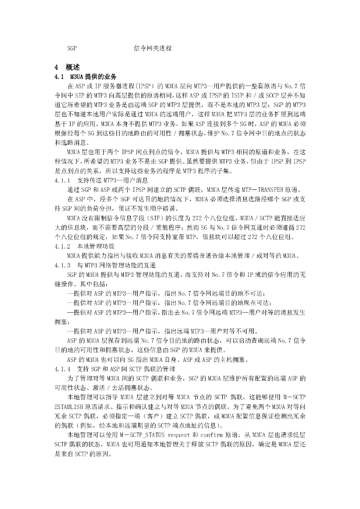 YD/T 1192-2002 No.7 信令与 IP 互通适配层技术规范——消息传递部分(MTP)第三级用户适配层(M3UA)