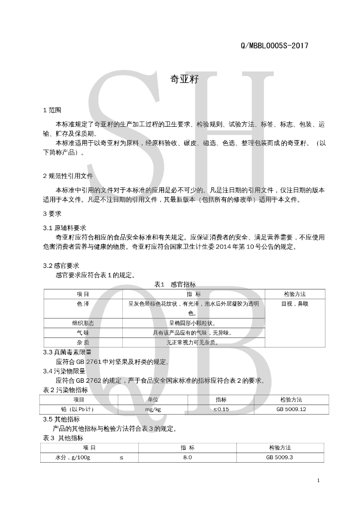 Q/MBBL 0005S-2017 奇亚籽