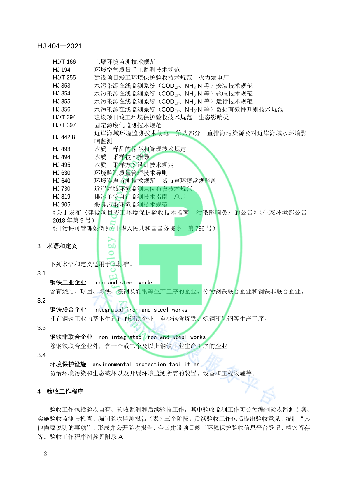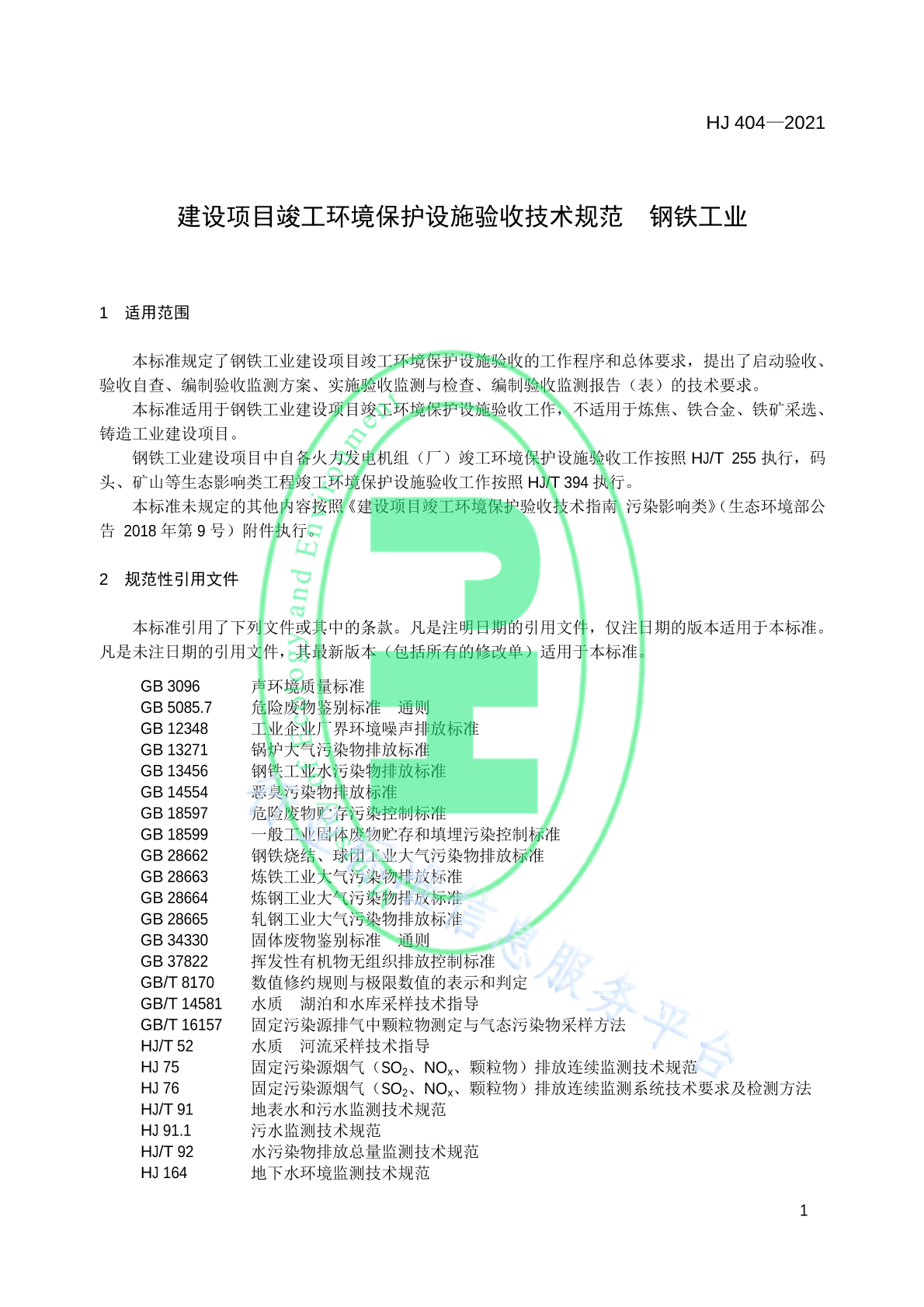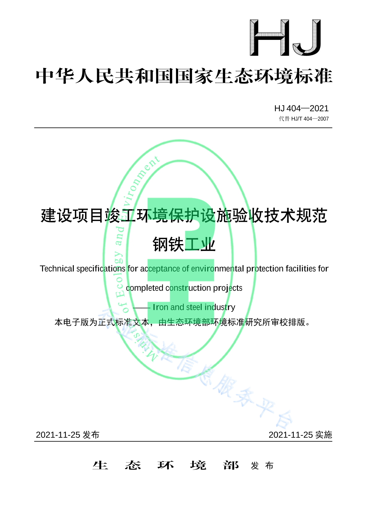HJ 404-2021 建设项目竣工环境保护设施验收技术规范 钢铁工业