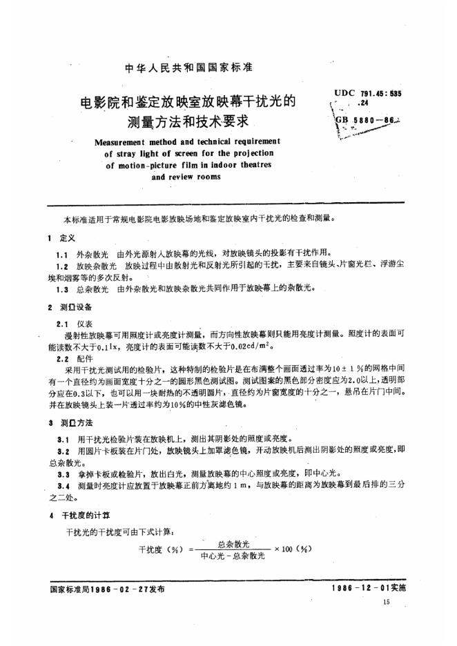 GY/T 189-2003 电影院和鉴定放映室放映幕干扰光的测量方法和技术要求
