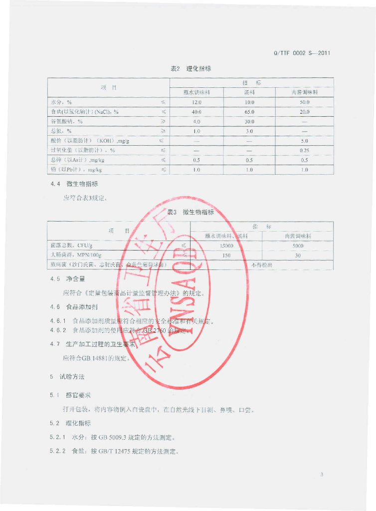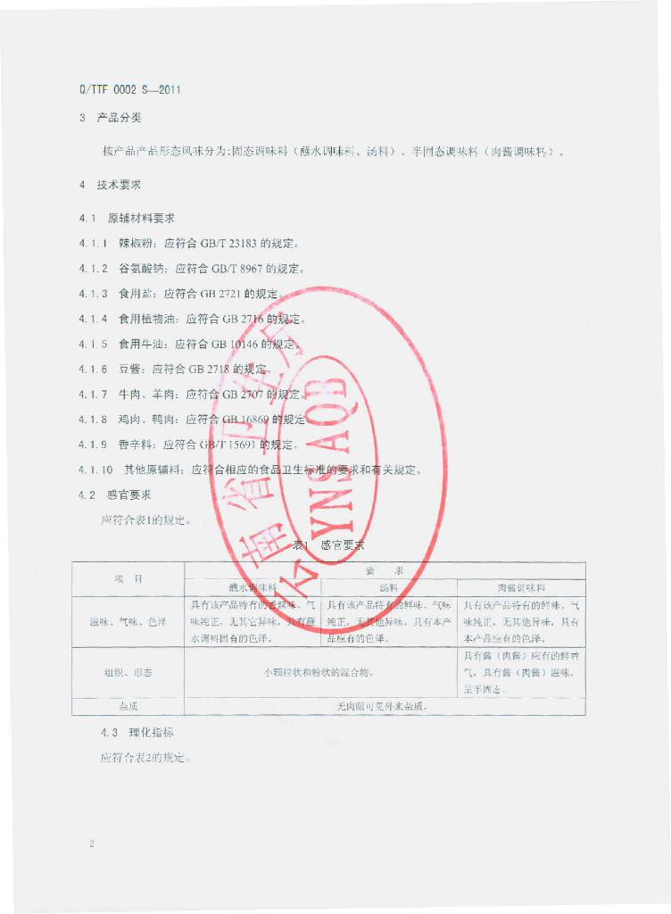 Q/TTF 0002S-2011 调味料