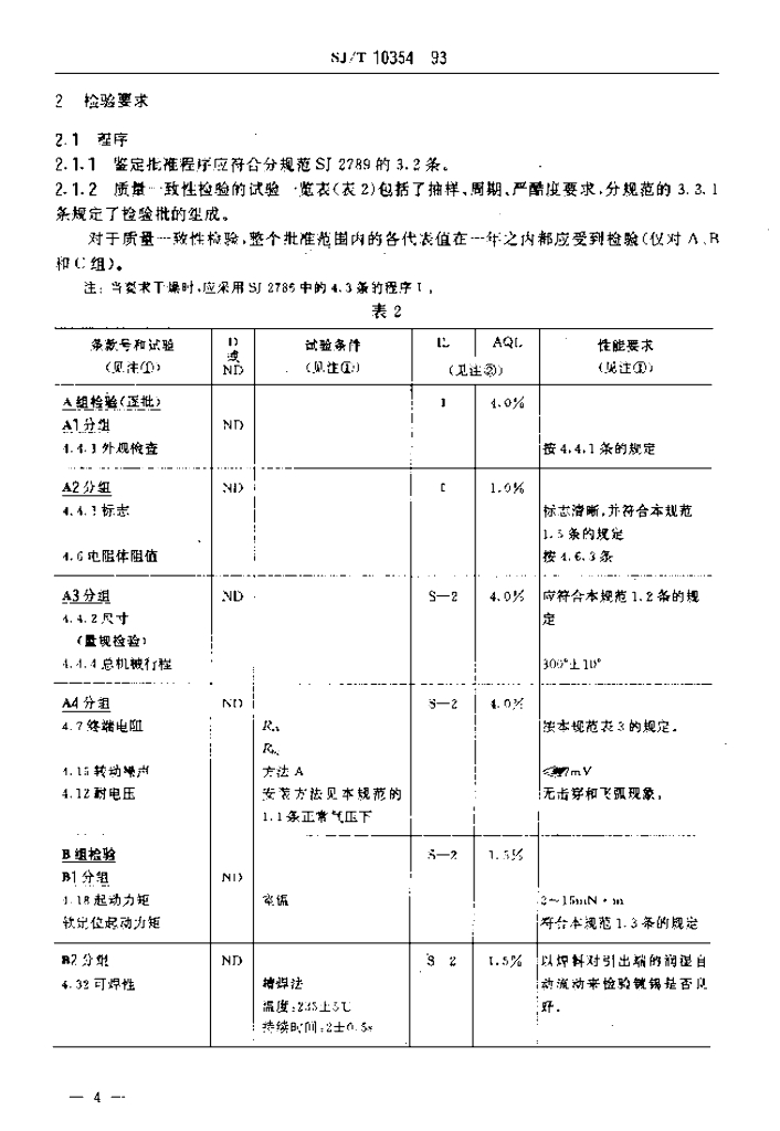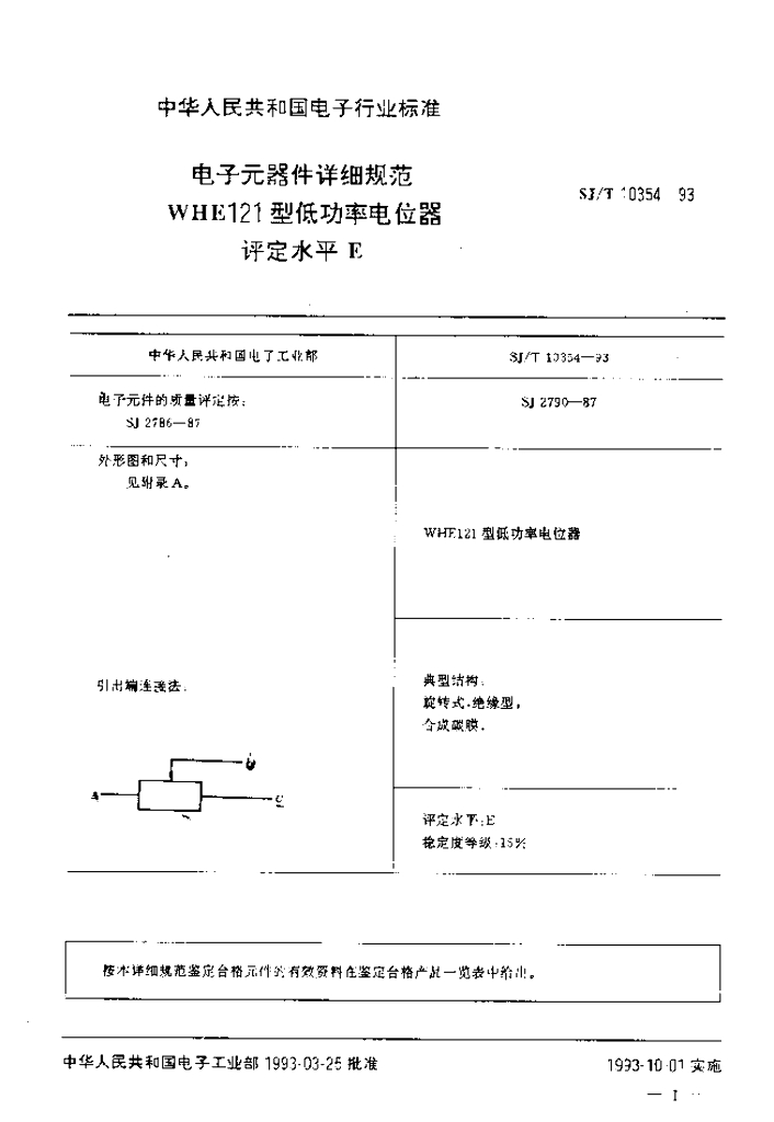 SJ/T 10354-1993 电子器件详细规范WHE121型低功率电位器 评定水平E