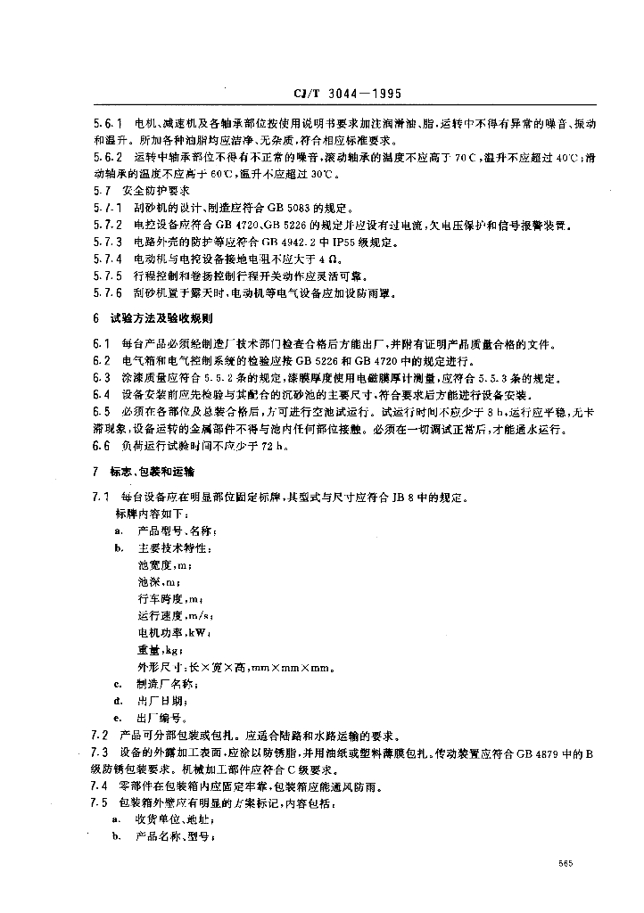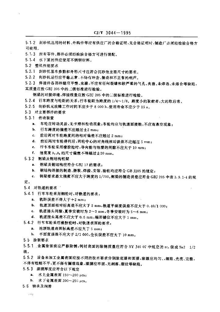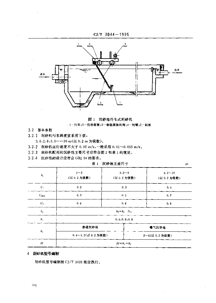 CJ/T 3044-1995 污水处理用沉砂池行车式刮砂机
