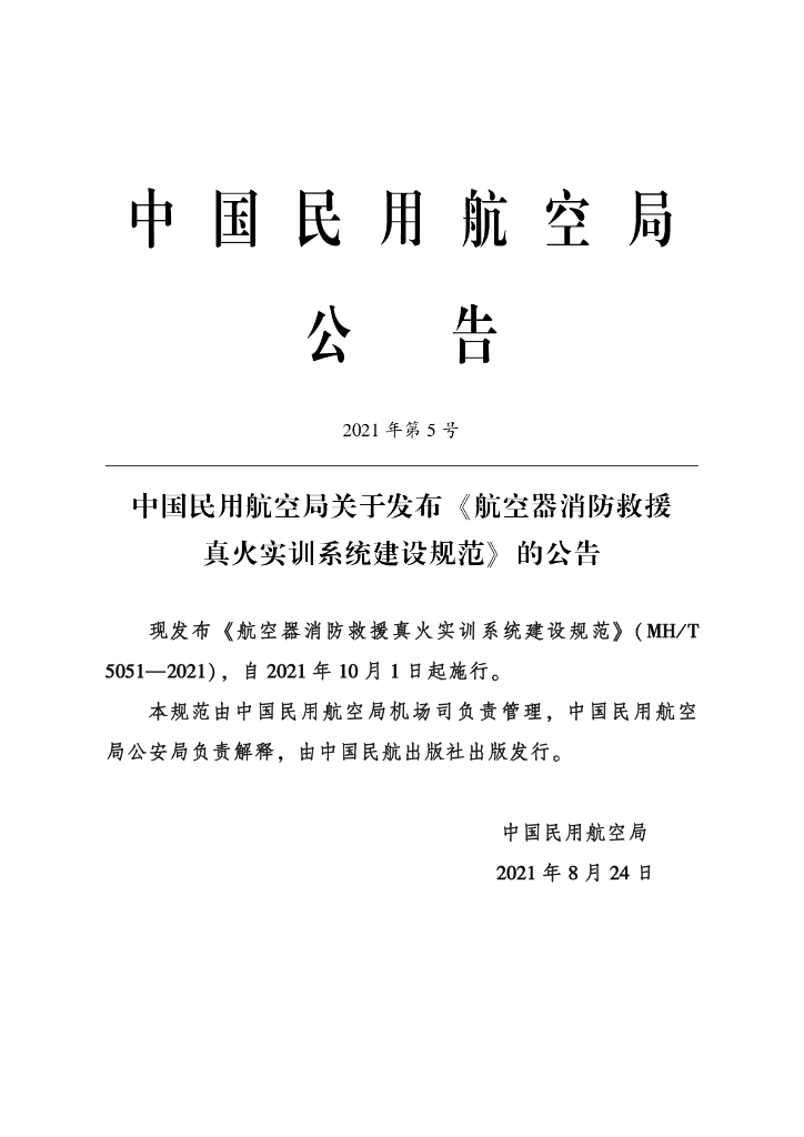 MH/T 5051-2021 航空器消防救援真火实训系统建设规范