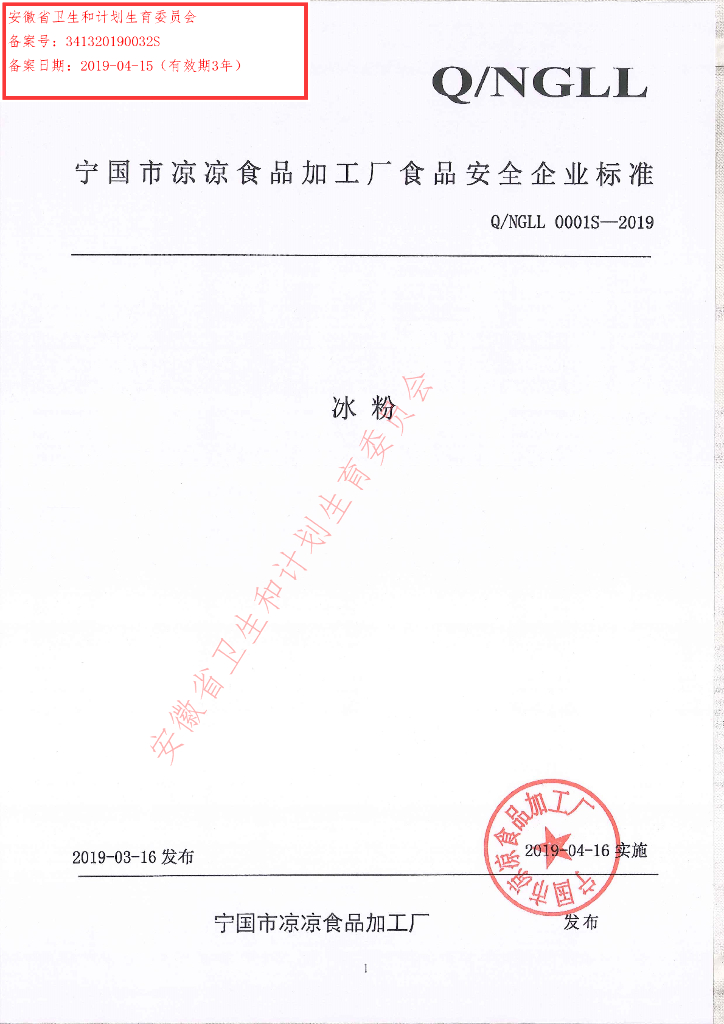 Q/NGLL 0001S-2019 冰粉