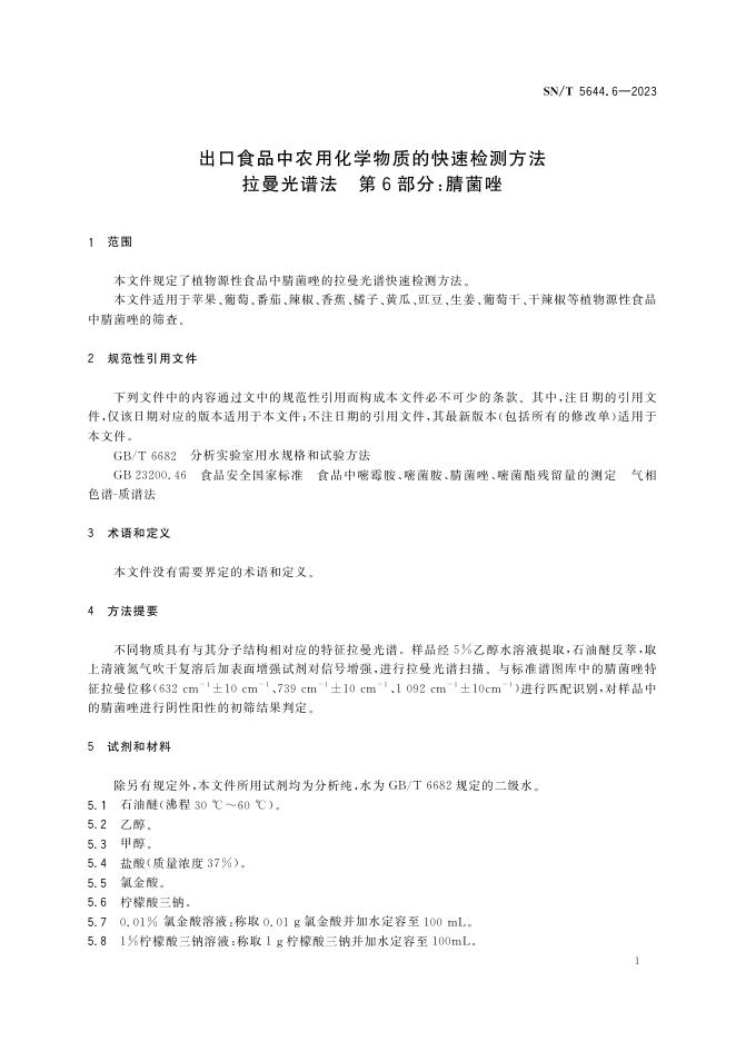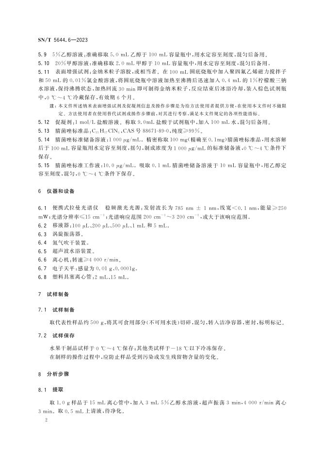 SN/T 5644.6-2023 出口食品中农用化学物质的快速检测方法 拉曼光谱法 第6部分:腈菌唑