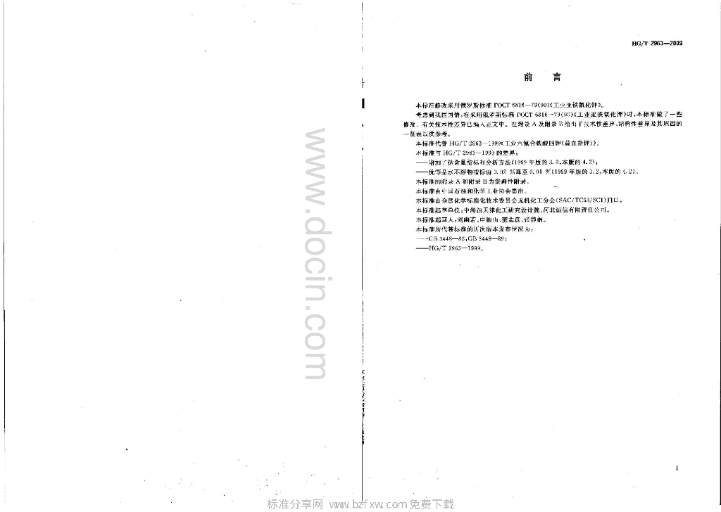 HG/T 2963-2009 代替 HG/T 2963-1999 工业六氰合铁酸四钾(黄血盐钾)