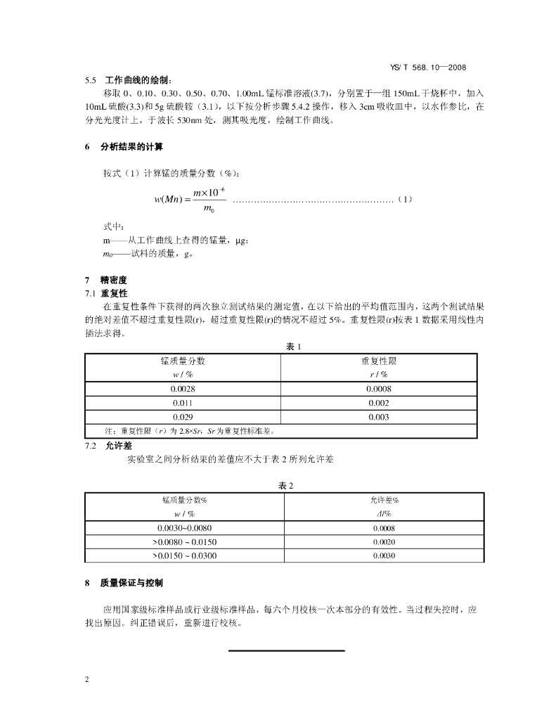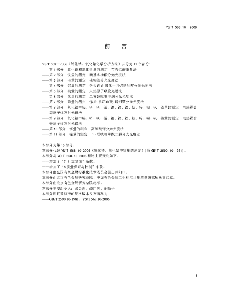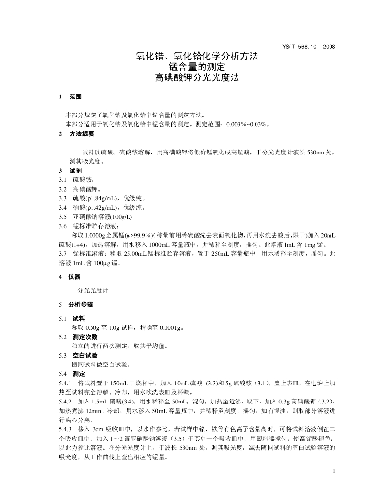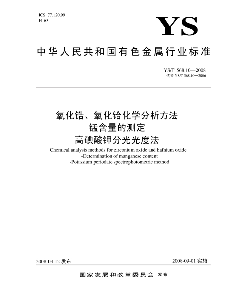 YS/T 568.10-2008 氧化锆、氧化铪化学分析方法 锰含量的测定 高碘酸钾分光光度法
