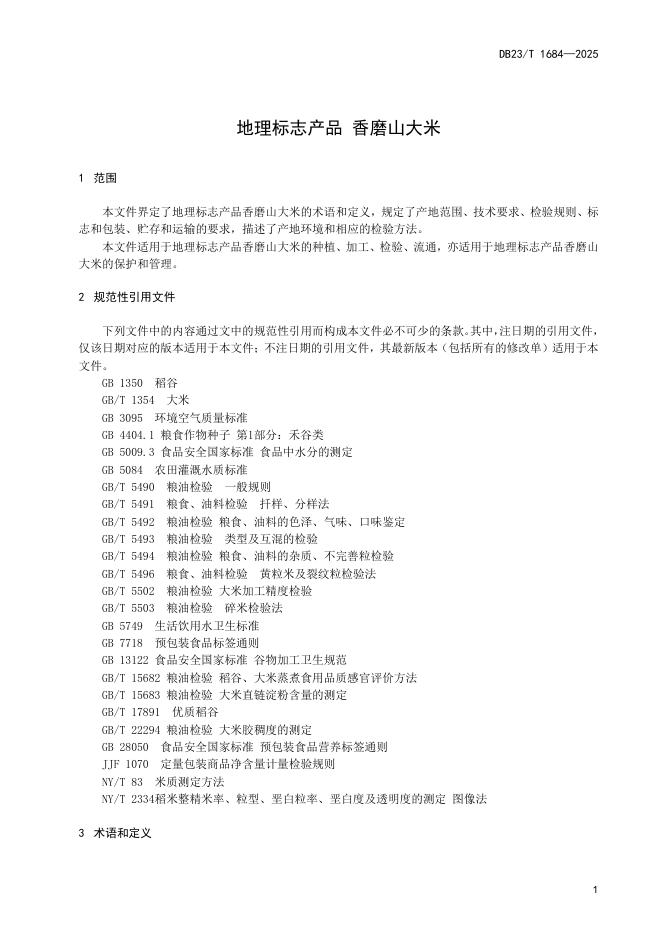 DB23/T 1684-2025 地理标志产品 香磨山大米