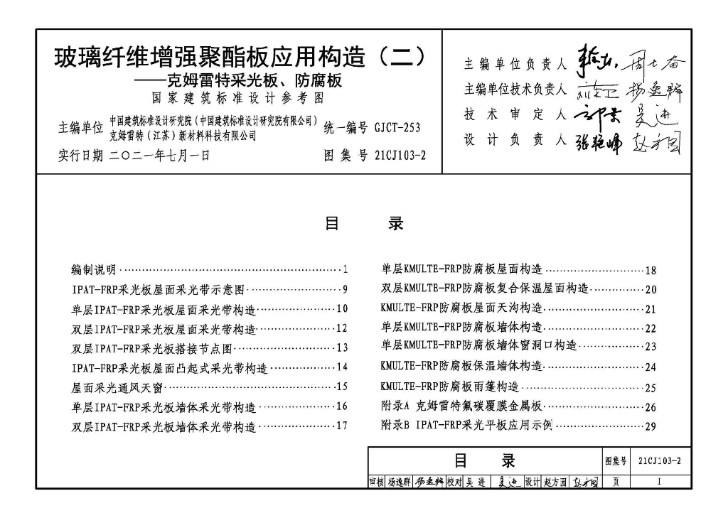 21CJ103-2 玻璃纤维增强聚酯板应用构造(二)——克姆雷特采光板、防腐板参考图集