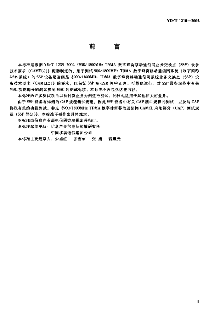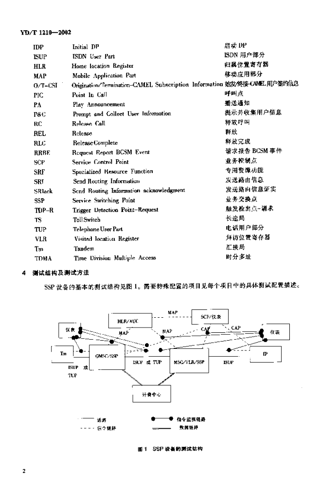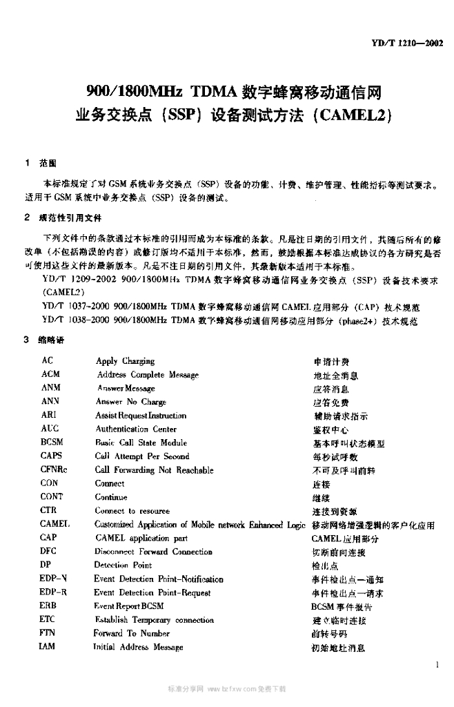 YD/T 1210-2002 900/1800MHz TDMA 数字蜂窝移动通信网业务交换点(SSP)设备测试方法(CAMEL2)