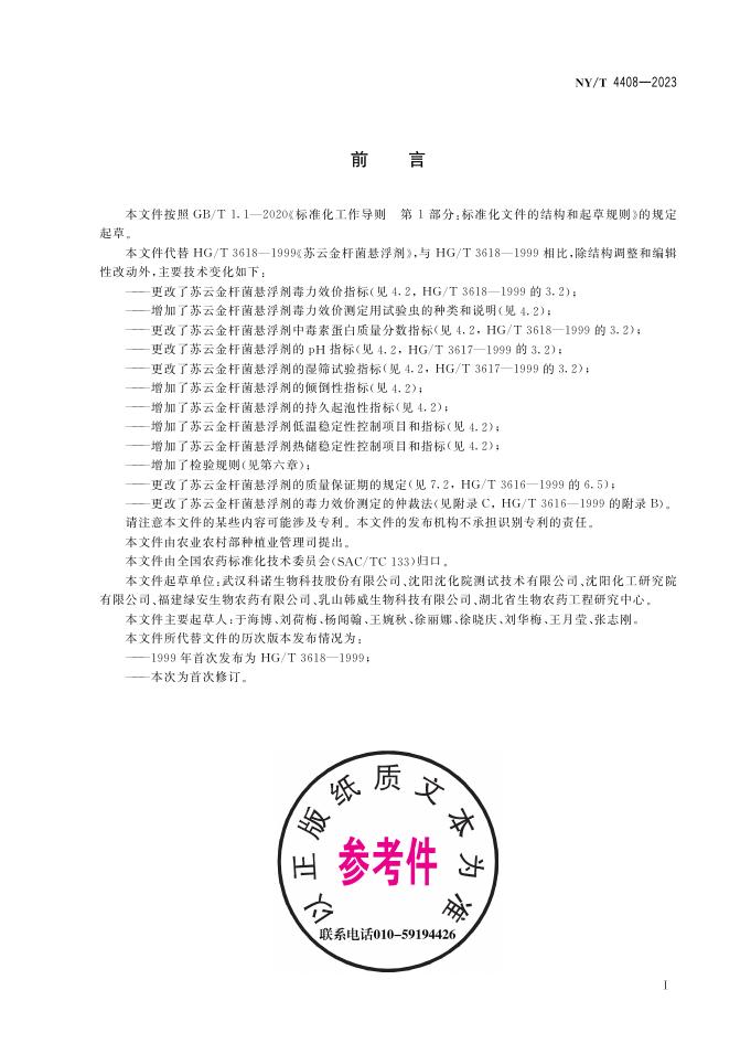 武汉科诺生物科技股份有限公司、沈阳沈化院测试技术有限公司、沈阳化工研究院有限公司、福建绿安生物农药有限公司、乳山韩威生物科技有限公司、湖北省生物农药工程研究中心