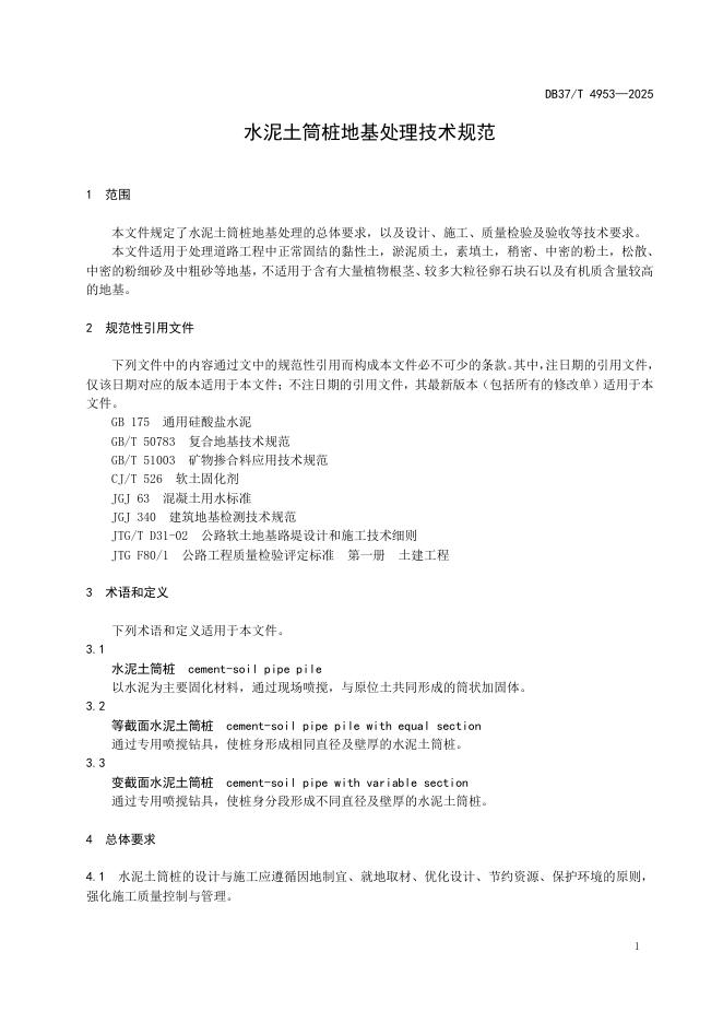 DB37/T 4953-2025 水泥土筒桩地基处理技术规范