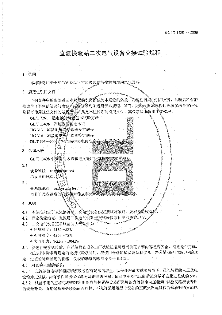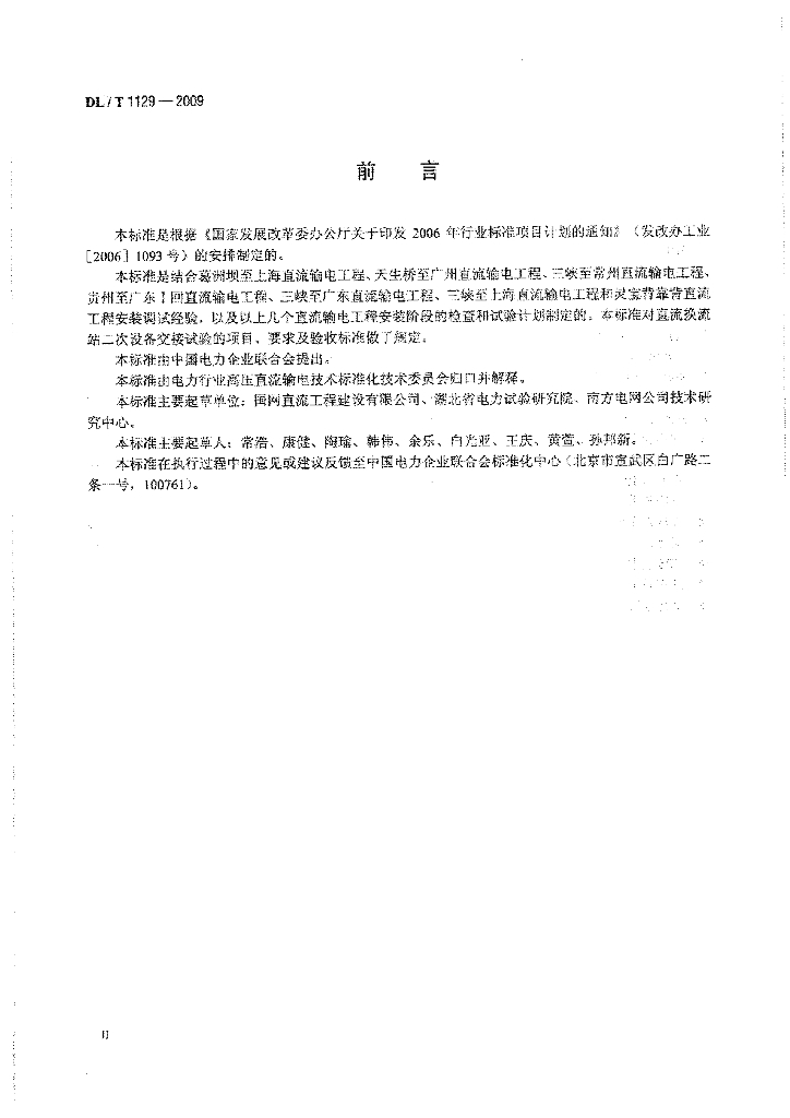 DL/T 1129-2009 直流换流站二次电气设备交接试验规程