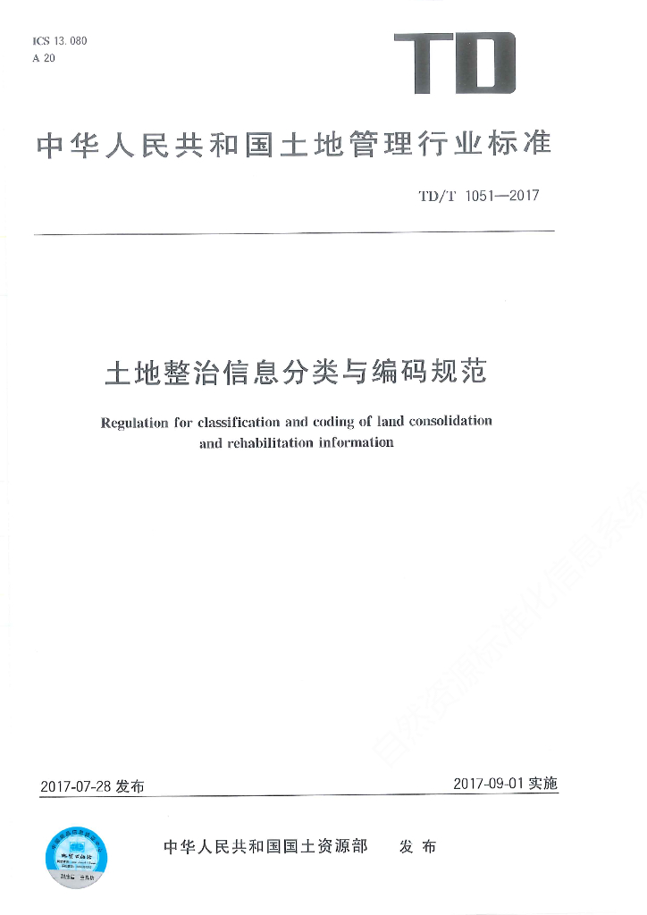 TD/T 1051-2017 土地整治信息分类与编码规范