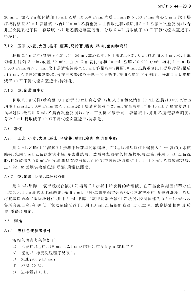 SN/T 5144-2019 出口食品中酮脲磺草吩酯残留量的测定 液相色谱-质谱/质谱法