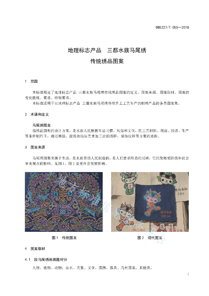 DB5227/T 055-2018 地理标志产品 三都水族马尾绣传统绣品图案