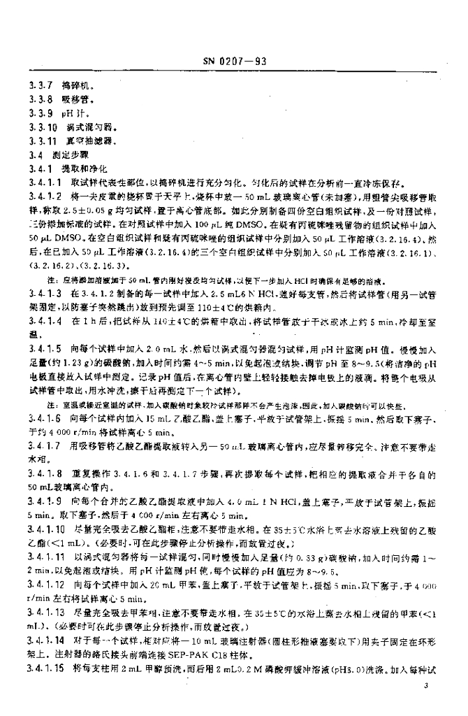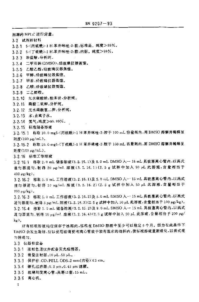 SN 0207-1993 出口肉中丙硫咪唑残留量检验方法