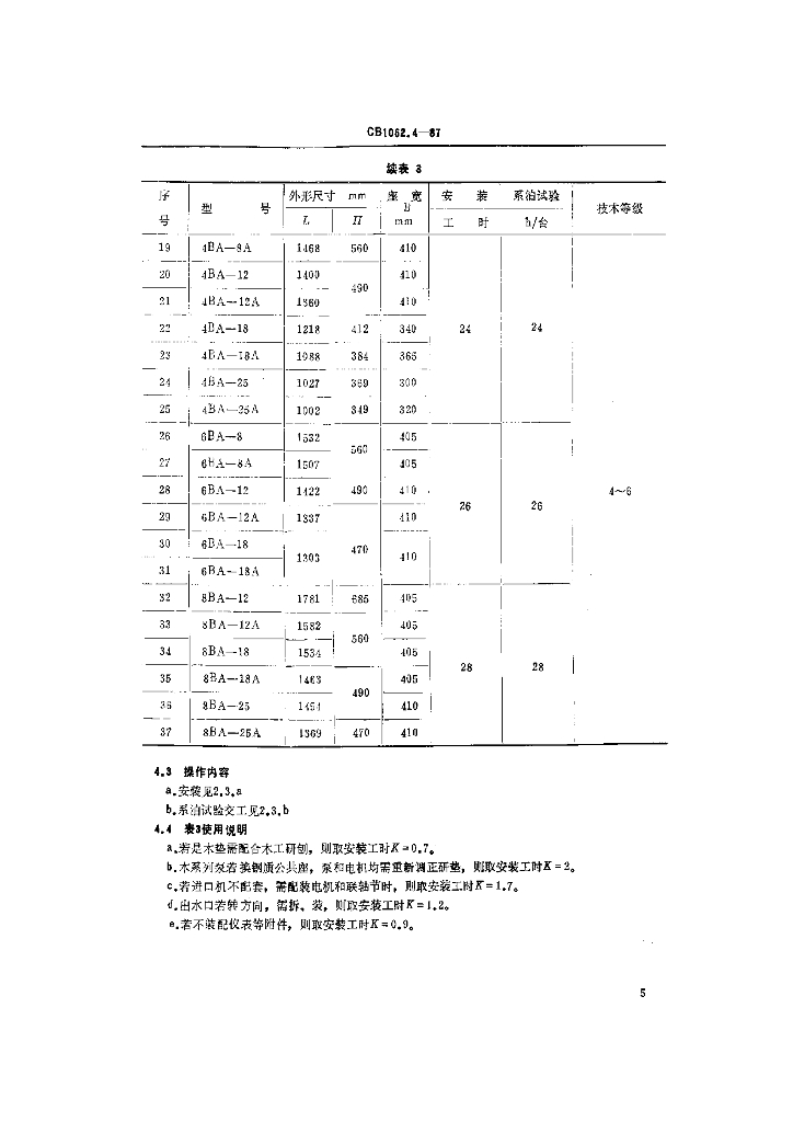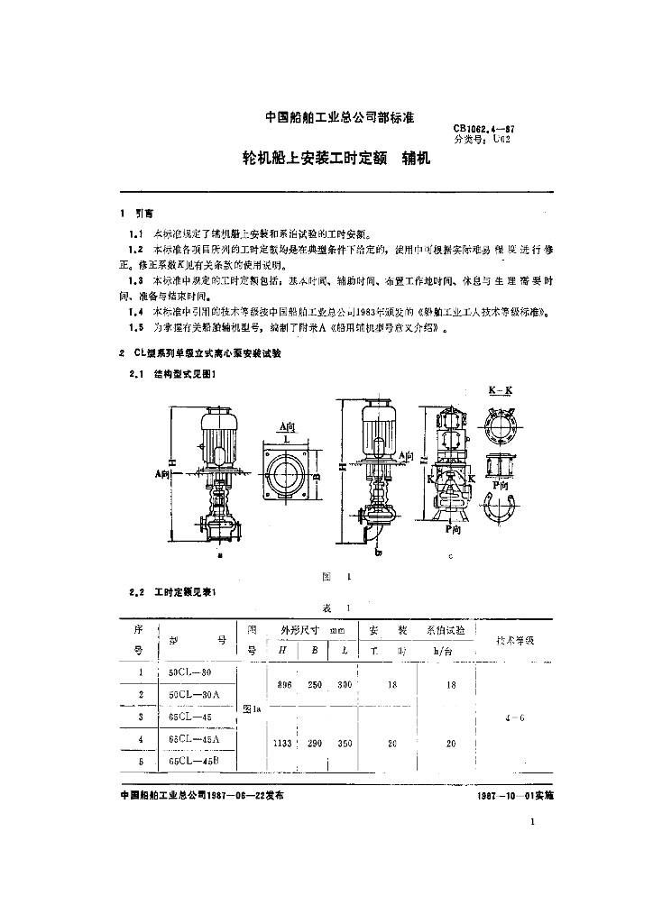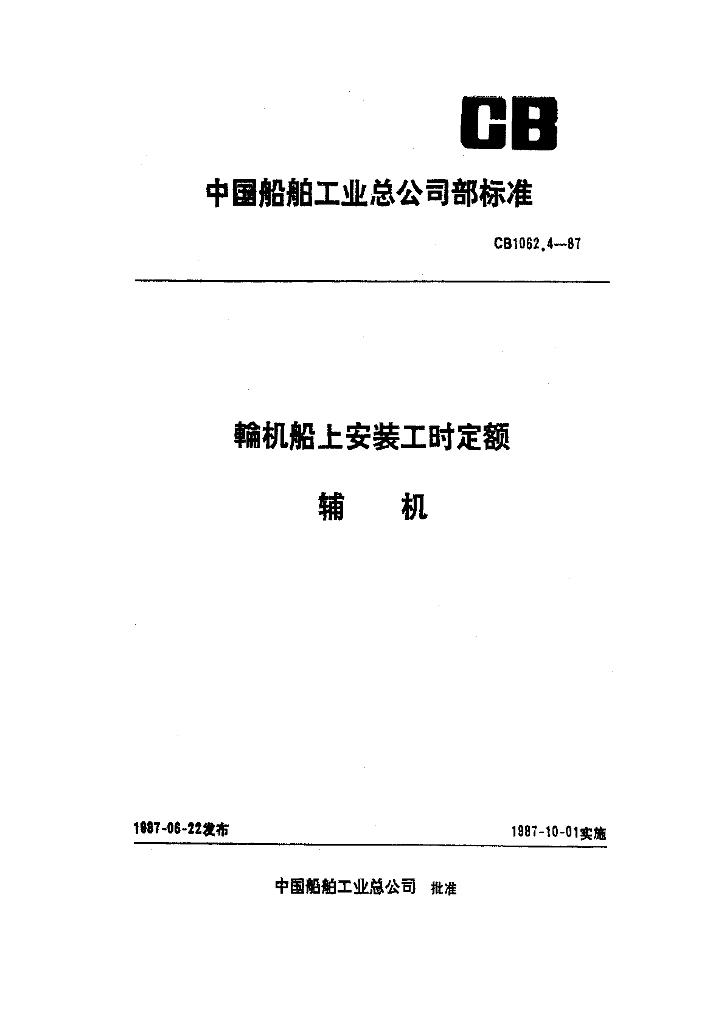CB 1062.4-1987 轮机船上安装工时定额 辅机