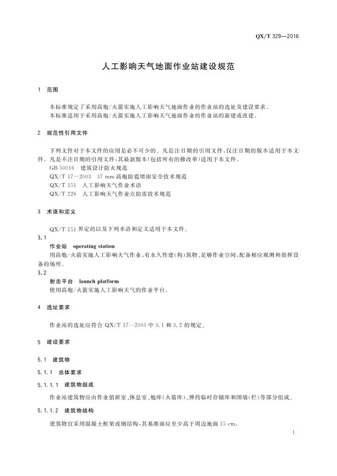 QX/T 329-2016 人工影响天气地面作业站建设规范