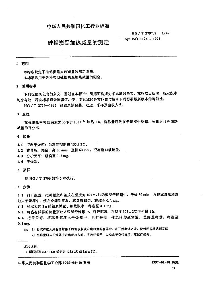 HG/T 2797.7-1996 硅铝炭黑加热减量的测定