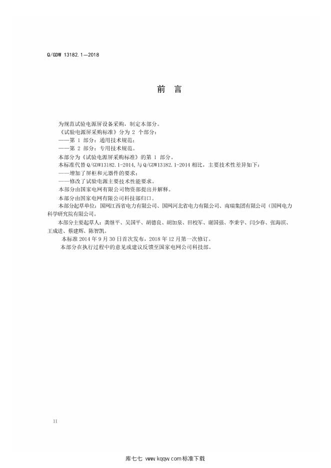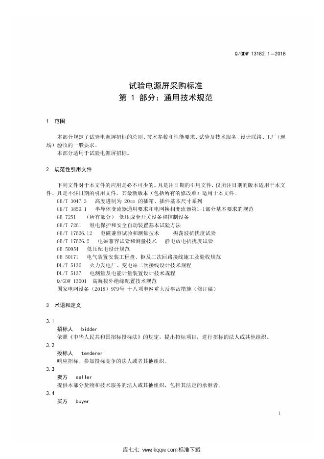 Q/GDW 13182.1-2018 试验电源屏采购标准 第1部分:通用技术规范
