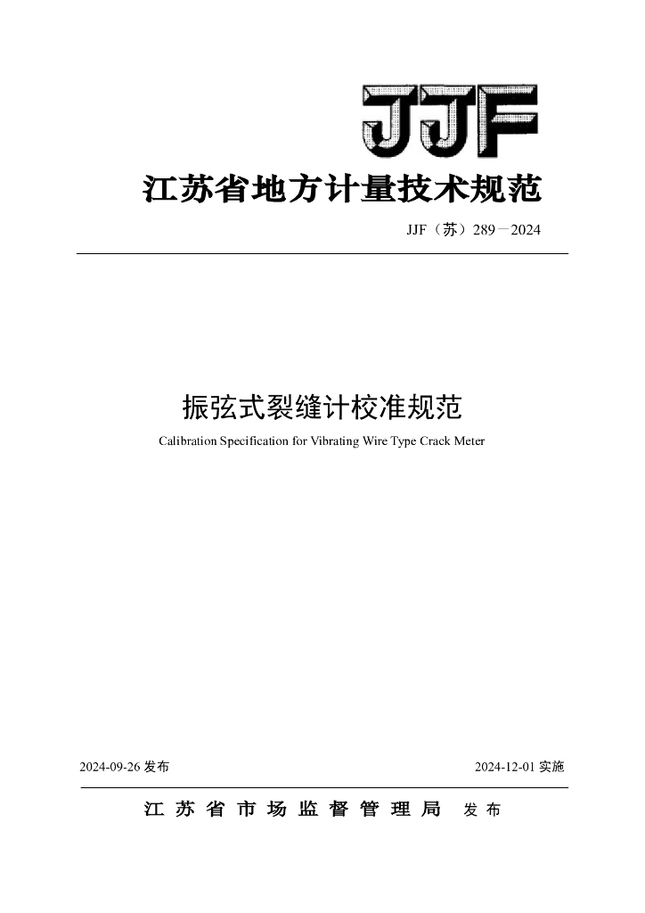 JJF(苏)289-2024 振弦式裂缝计校准规范