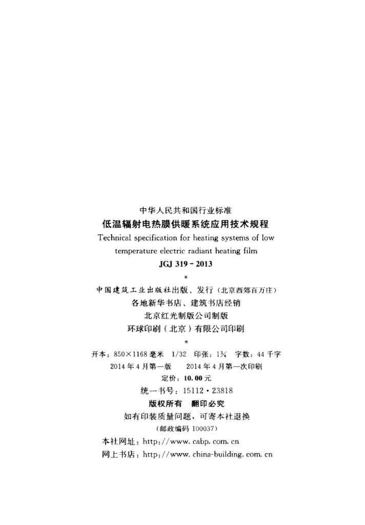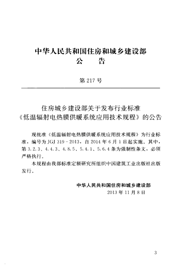 JGJ 319-2013 低温辐射电热膜供暖系统应用技术规程