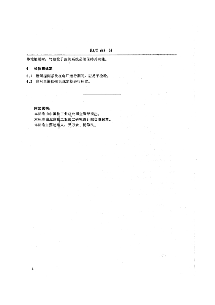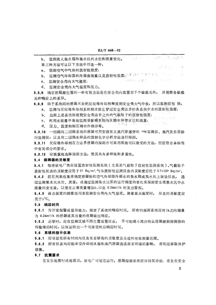 EJ/T 668-1992 压水堆核电厂反应堆冷却剂压力边界泄漏探测系统设计准则