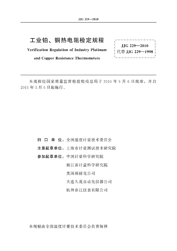 - 代替标准:JJG 229-1998