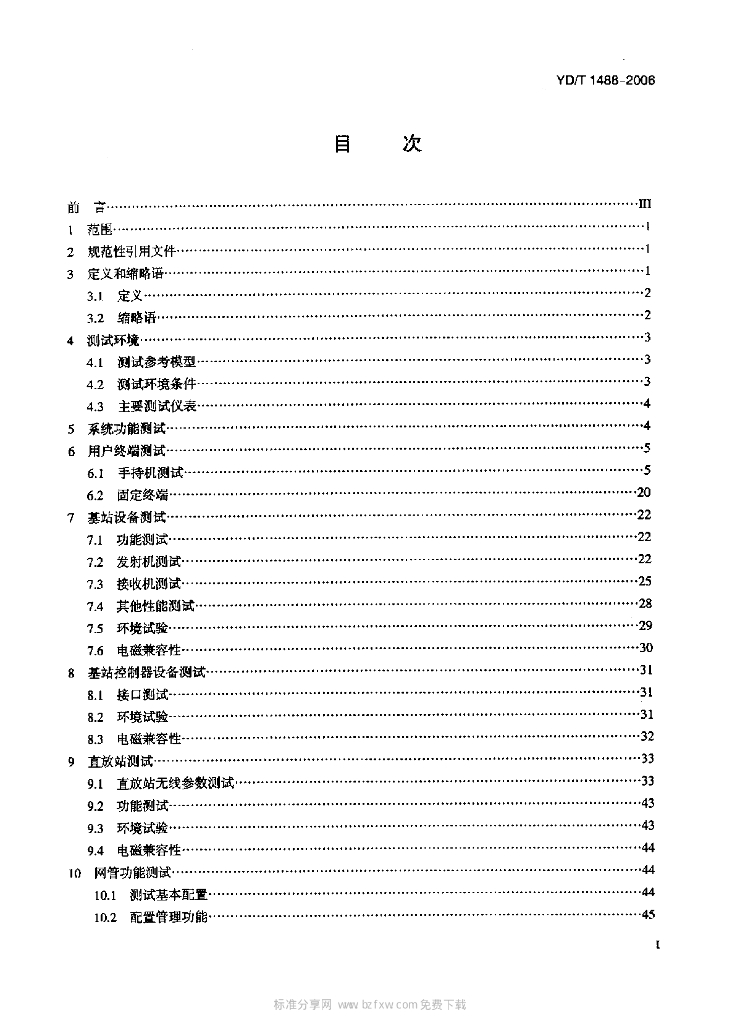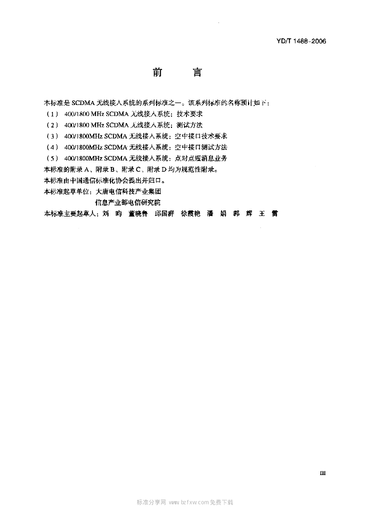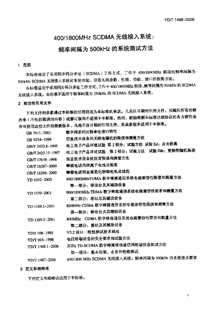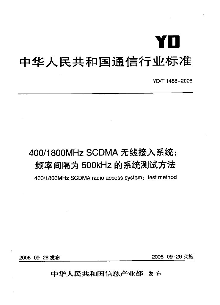 YD/T 1488-2006 400/1800MHz SCDMA无线接入系统:频率间隔为500kHz的系统测试方法