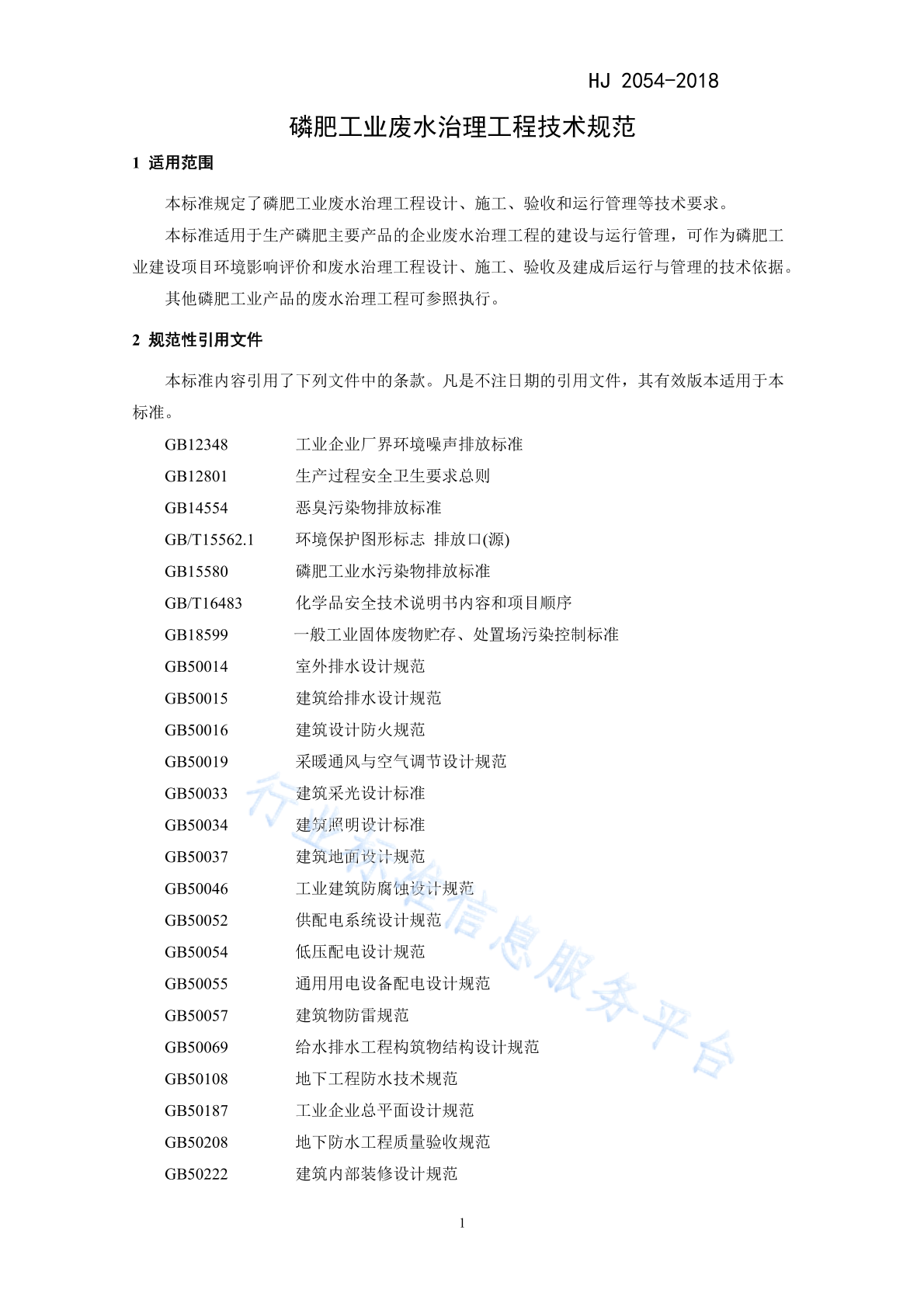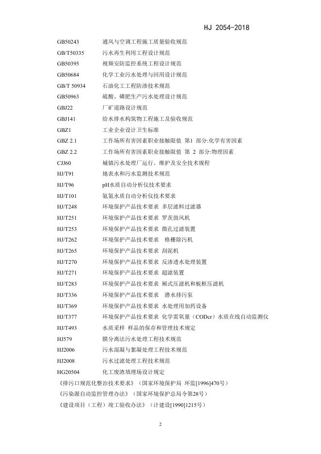 HJ 2054-2018 磷肥工业废水治理工程技术规范