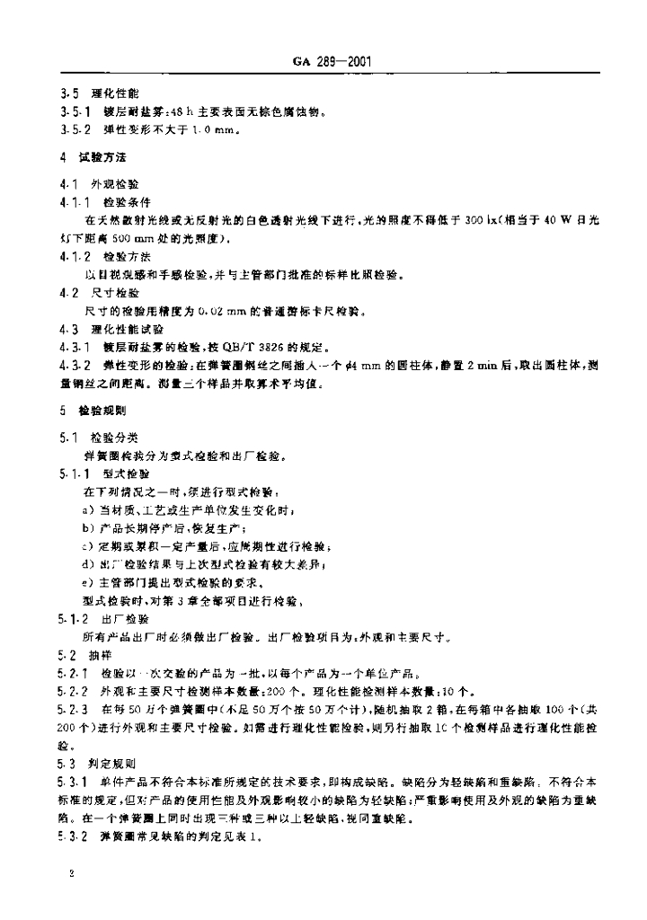 GA 289-2001 警用服饰弹簧圈