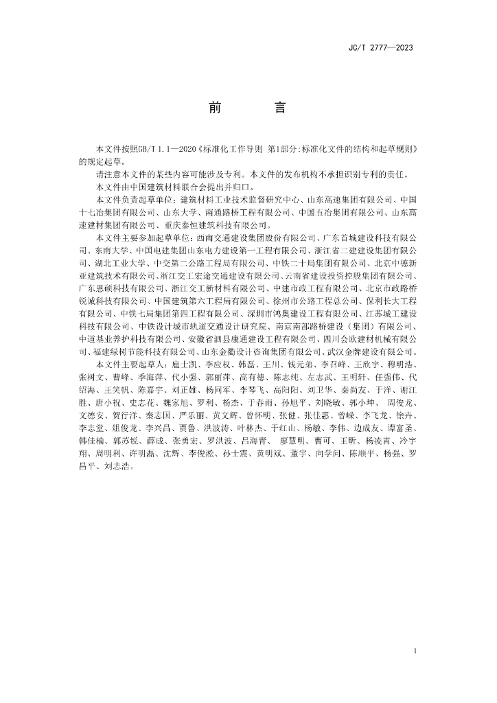 建筑材料工业技术监督研究中心、山东高速集团有限公司、中国十七冶集团有限公司、山东大学、南通路桥工程有限公司、中国五冶集团有限公司、山东高速建材集团有限公司、重庆泰恒建筑科技有限公司、西南交通建设集团股份有限公司、广东首城建设科技有限公司、东南大学、中国电建集团山东电力建设第一工程有限公司、浙江省二建建设集团有限公司、湖北工业大学、中交第二公路工程局有限公司、中铁二十局集团有限公司、北京中德新亚建筑技术有限公司、浙江交工宏途交通建设有限公司、云南省建设投资控股集团有限公司、广东恩硕科技有限公司、浙江交工新材