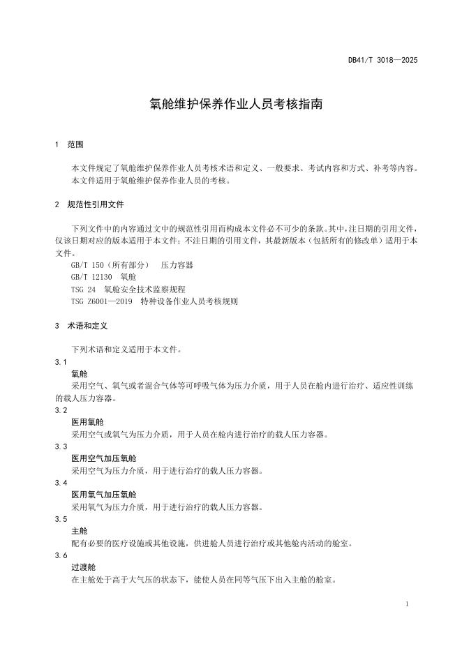 DB41/T 3018-2025 氧舱维护保养作业人员考核指南